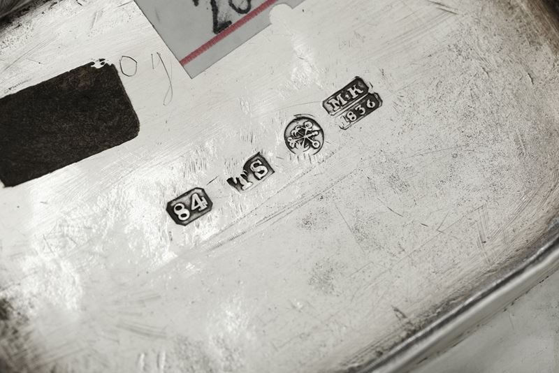 Assayer M. Karpinsky, mark for silversmith T S (unidentified). Molten, embossed and chiselled silver