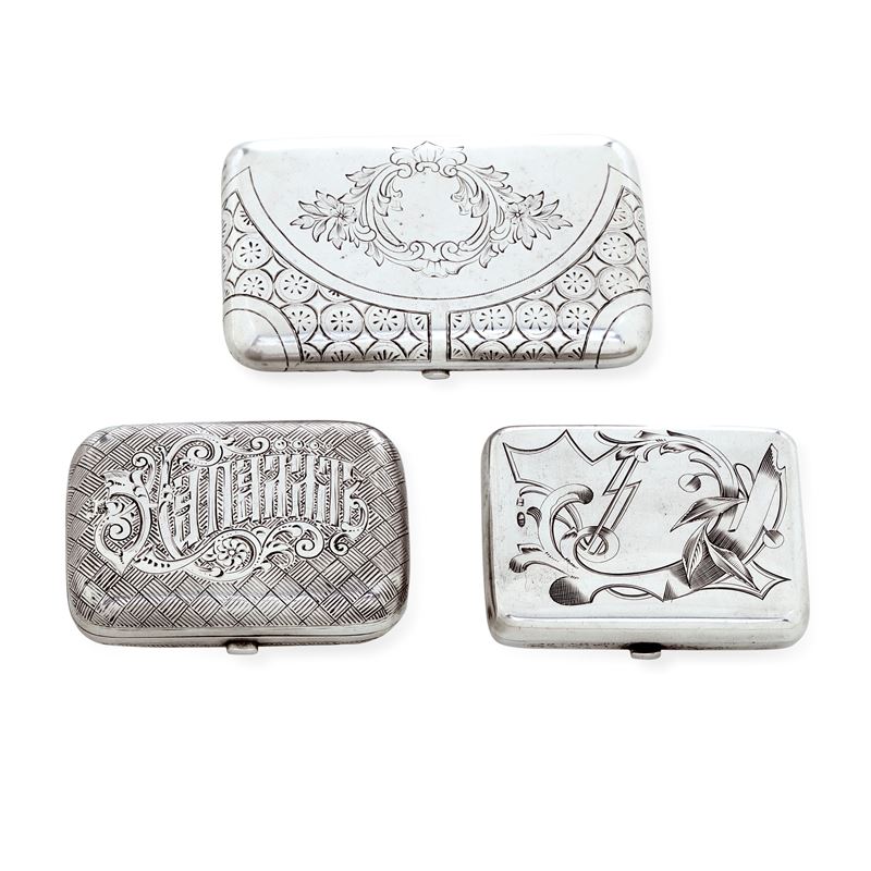 Due Mosca, uno San Pietroburgo, XIX-XX secolo Due tabacchiere e un portasigarette
