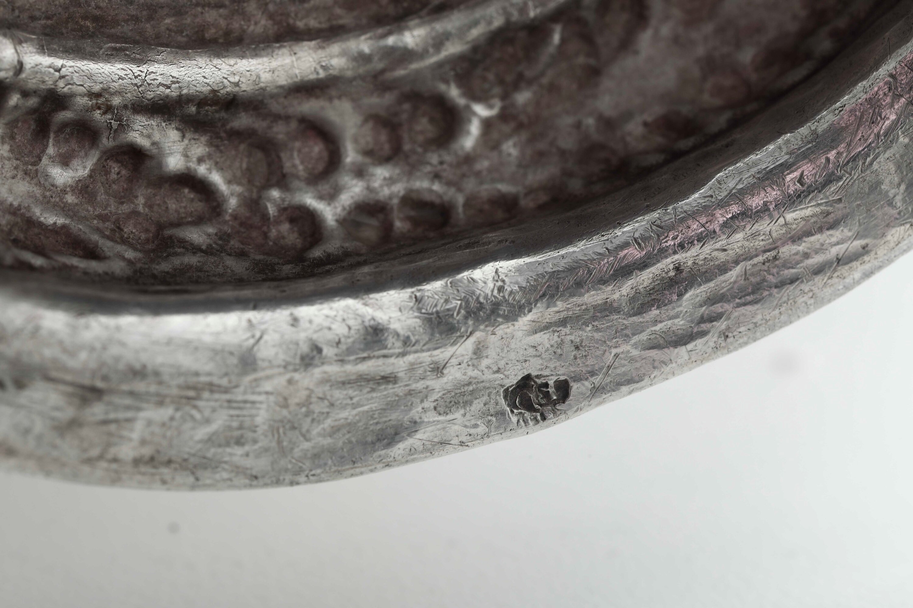 Argento fuso sbalzato cesellato e manico in legno ebanizzat
