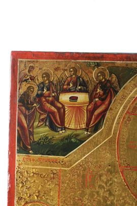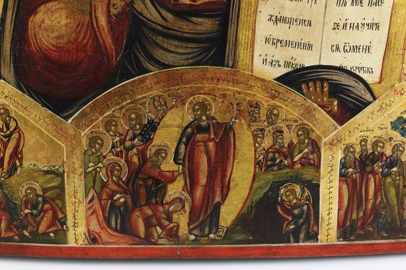 Sull'icona sono raffigurate la Resurrezione di Cristo, l'Ascensione al cielo, la Trasfigurazione sul monte Tabor, la Trinità nel Vecchio Testamento e la presentazione al tempio del Signore e il giusto Simeone.