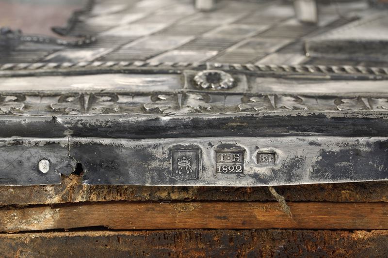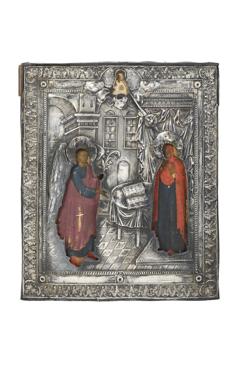 Riza in argento, Russia, inizi XIX secolo, marchio della città (non identificata) e del saggiatore con datario 1822