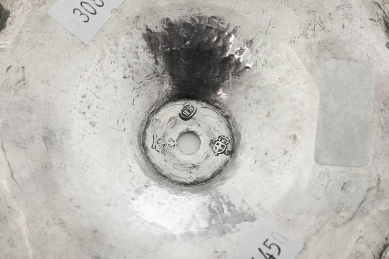 Torino, ultimo quarto del XVIII secolo. Assaggiatore Giuseppe Vernoni (1779-1824). Contrassaggiatore Bartolomeo Bernardi (1778-1816). Maestro argentiere Giuliano Gabriel Marcello (1740 ca - post 1793) Portacandele