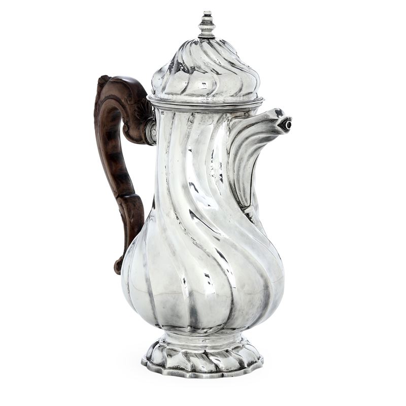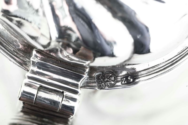 Venezia, seconda metà del XVIII secolo. Marchio di titolo con saggiatore M. P. (documentato nel 1753) marchio dell'argentiere Z. S. (documentato ma non identificato) Caffettiera