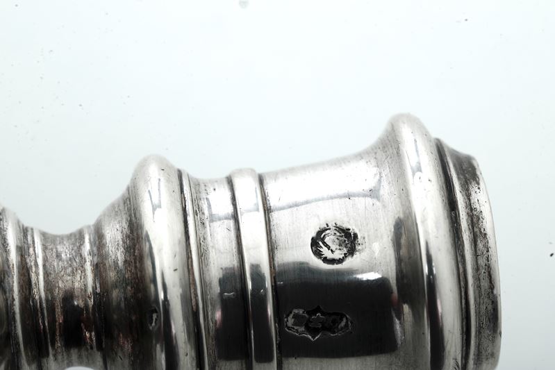 Piede circolare mistilineo e fusto a balaustro rastremato.