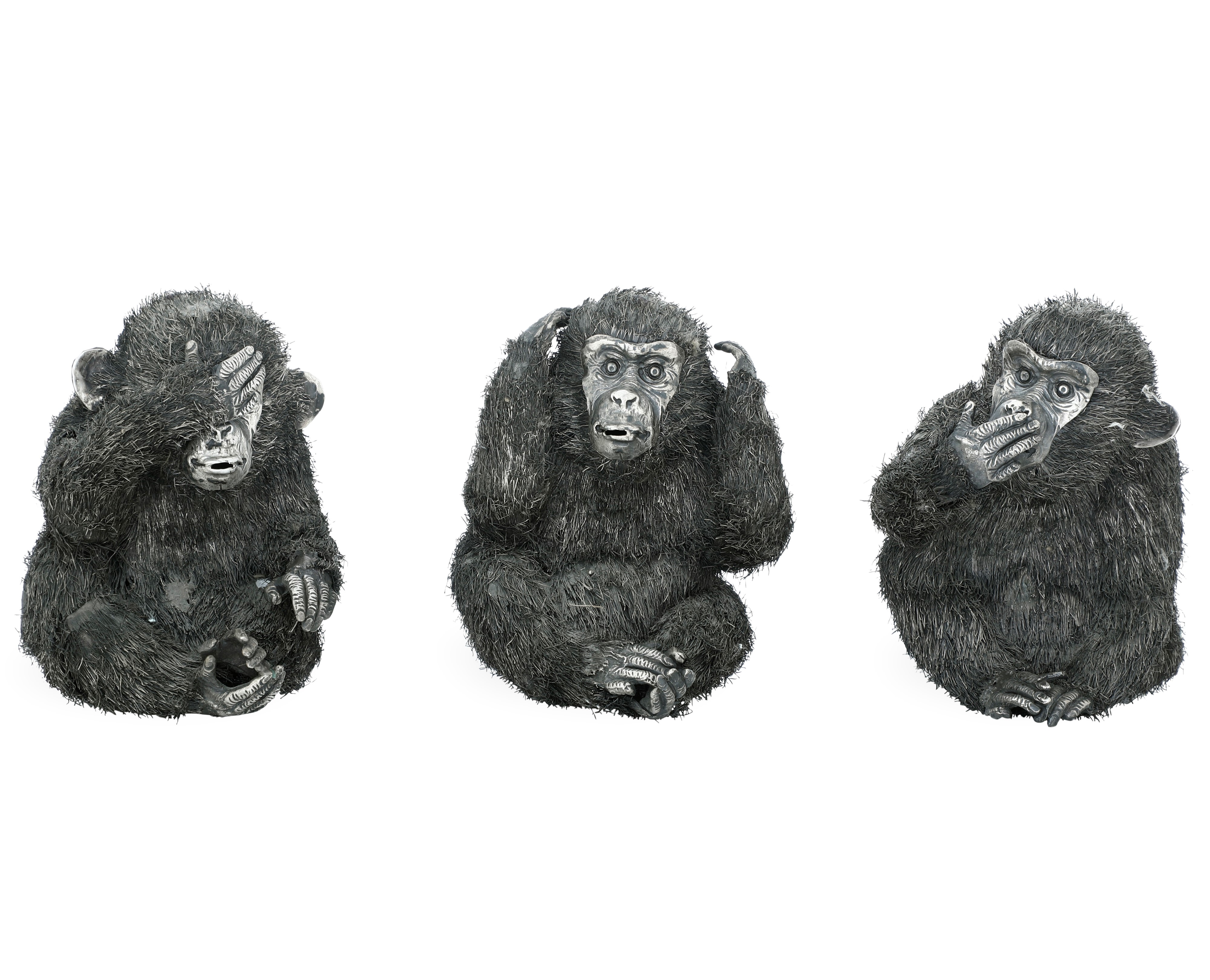 Argenteria artistica italiana del XX secolo (Lisi, Firenze?) apparentemente privi di punzonatura Non vedo, non sento, non parlo