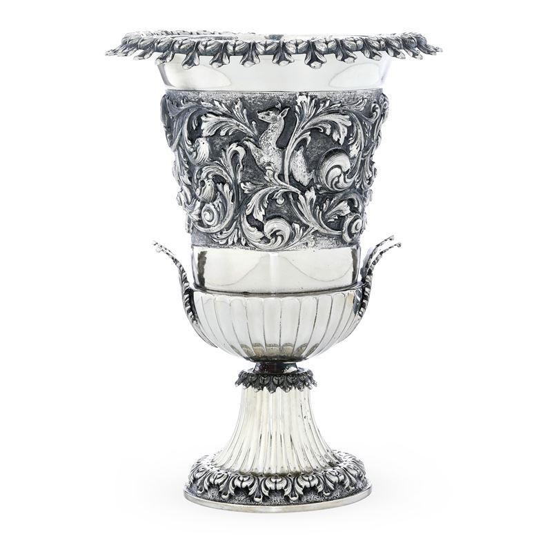 Corpo a campana rovesciata decorato con volute fogliacee e animali