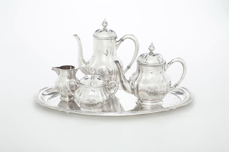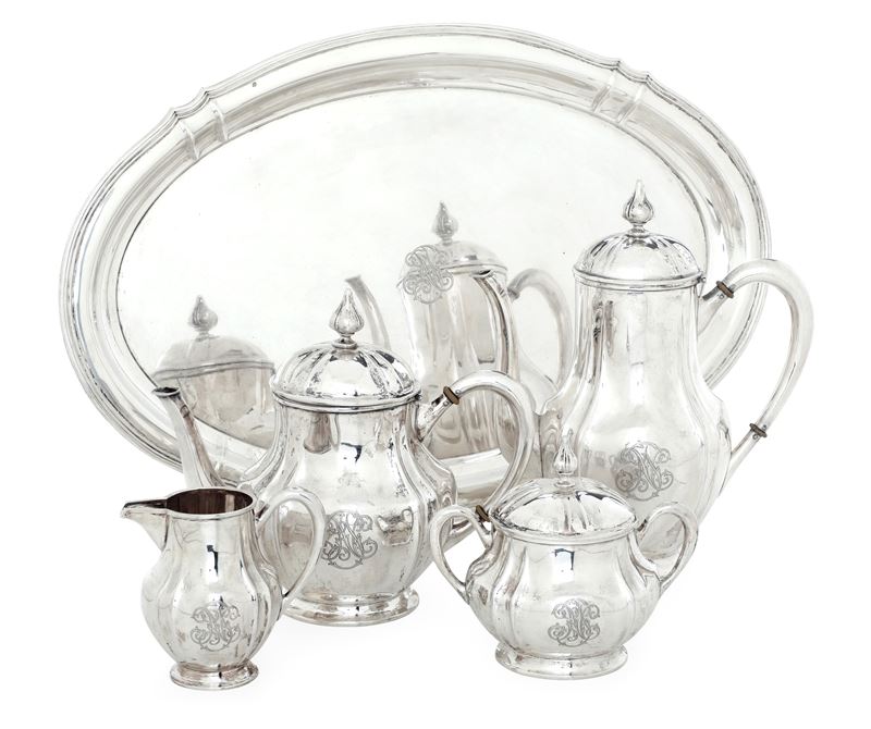 Argenteria tedesca, inizi del XX secolo Servizio da tè e caffè con vassoio
