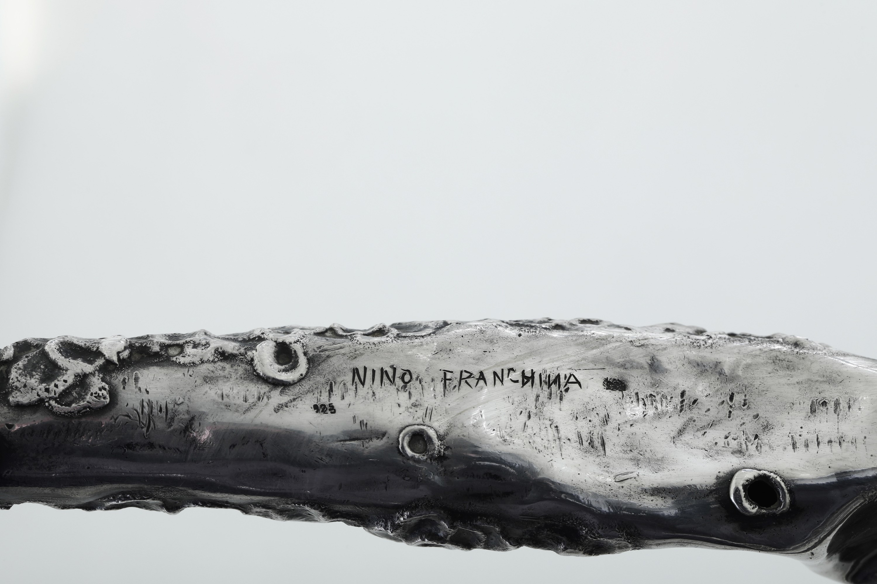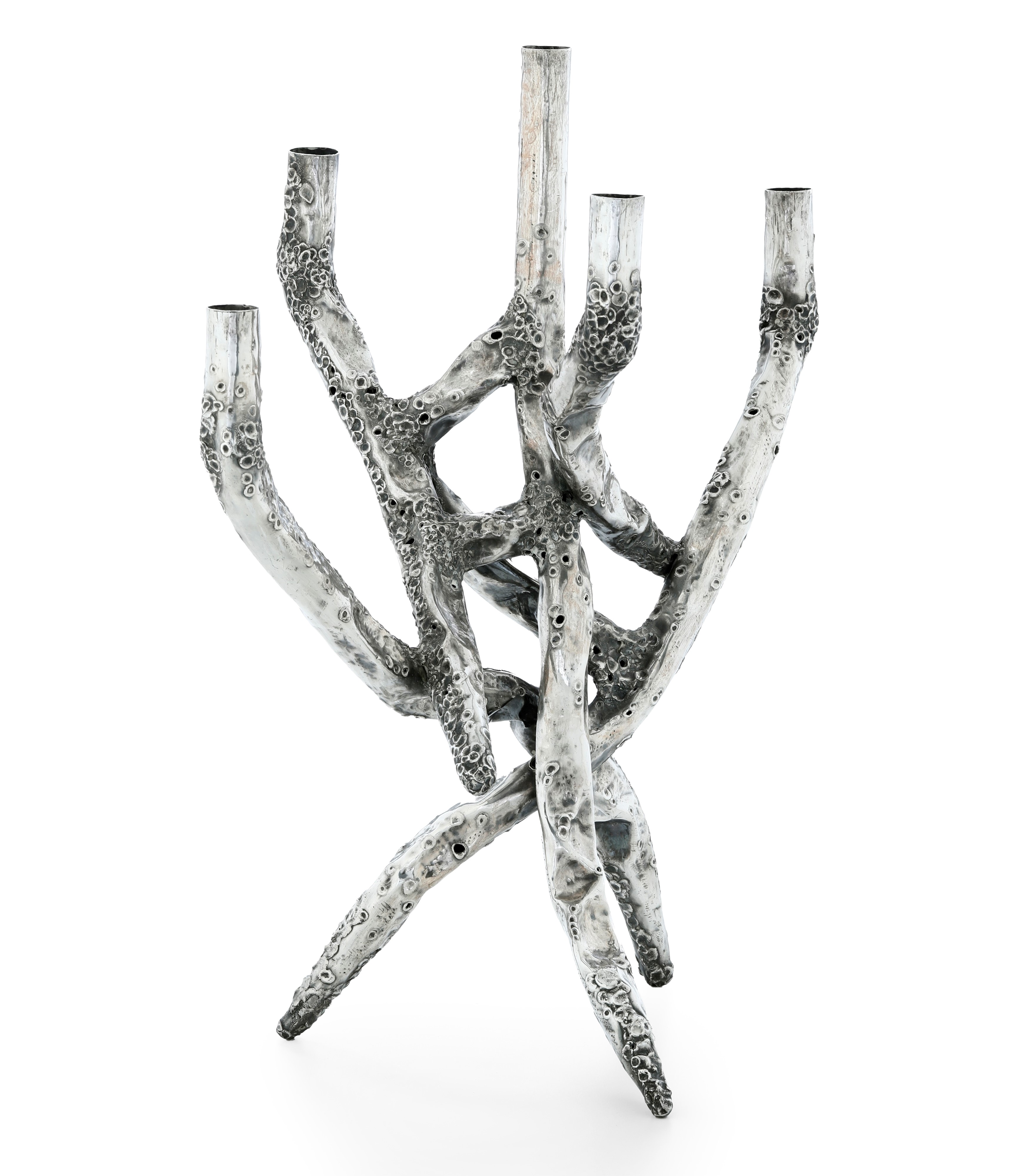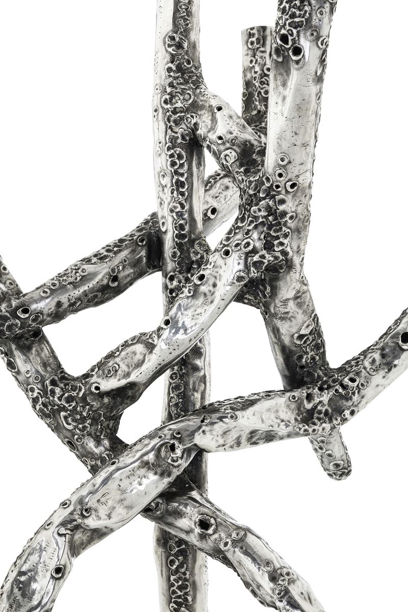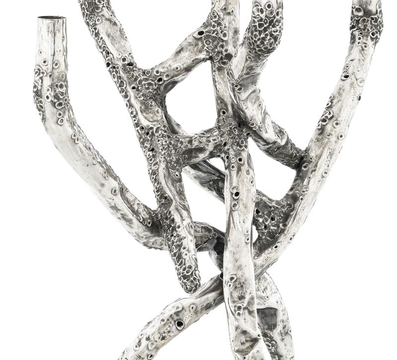 Arte italiana, seconda metà del XX secolo. Nino Franchina (1912-1988). Firma incisa Grande candelabro a cinque fiamme