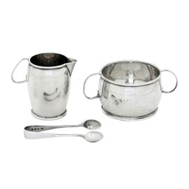 Birmingham 1912 Set Art Nouveau composto da lattiera e zuccheriera con pinza