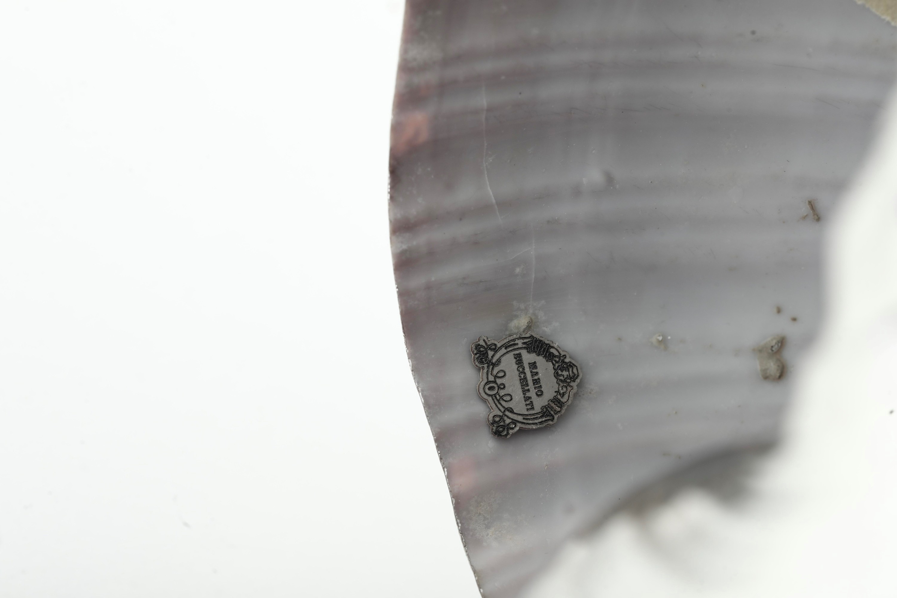 Etichetta a scudo Maison Mario Buccellati. Italia XX-XXI secolo Conchiglia rivestita in argento