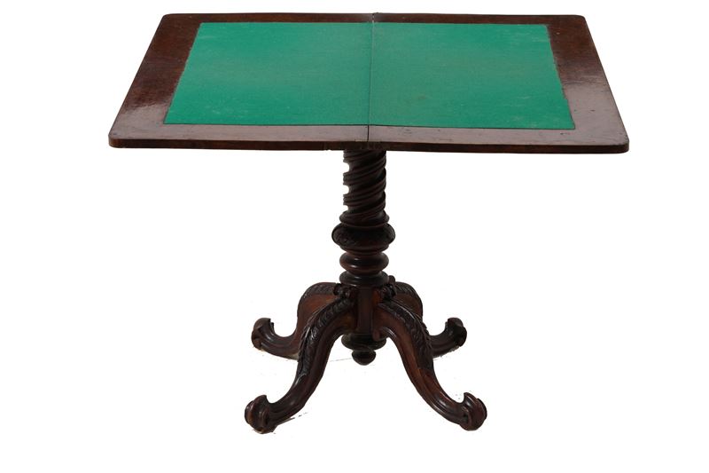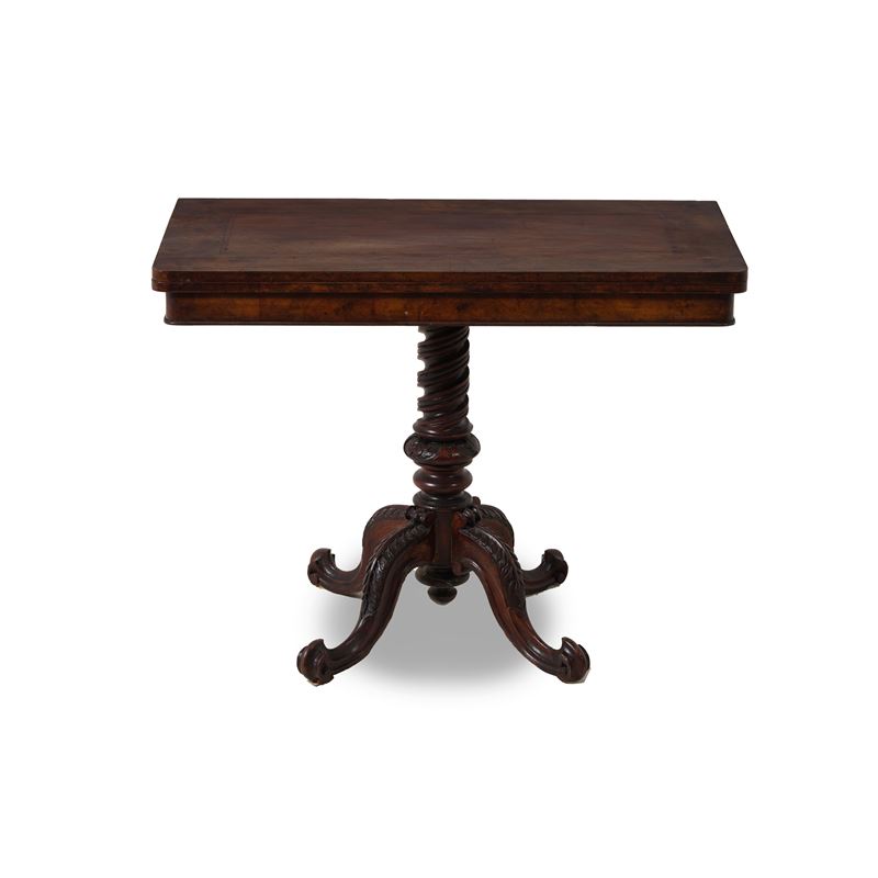 Tavolo da gioco lastronato e intagliato. XIX secolo