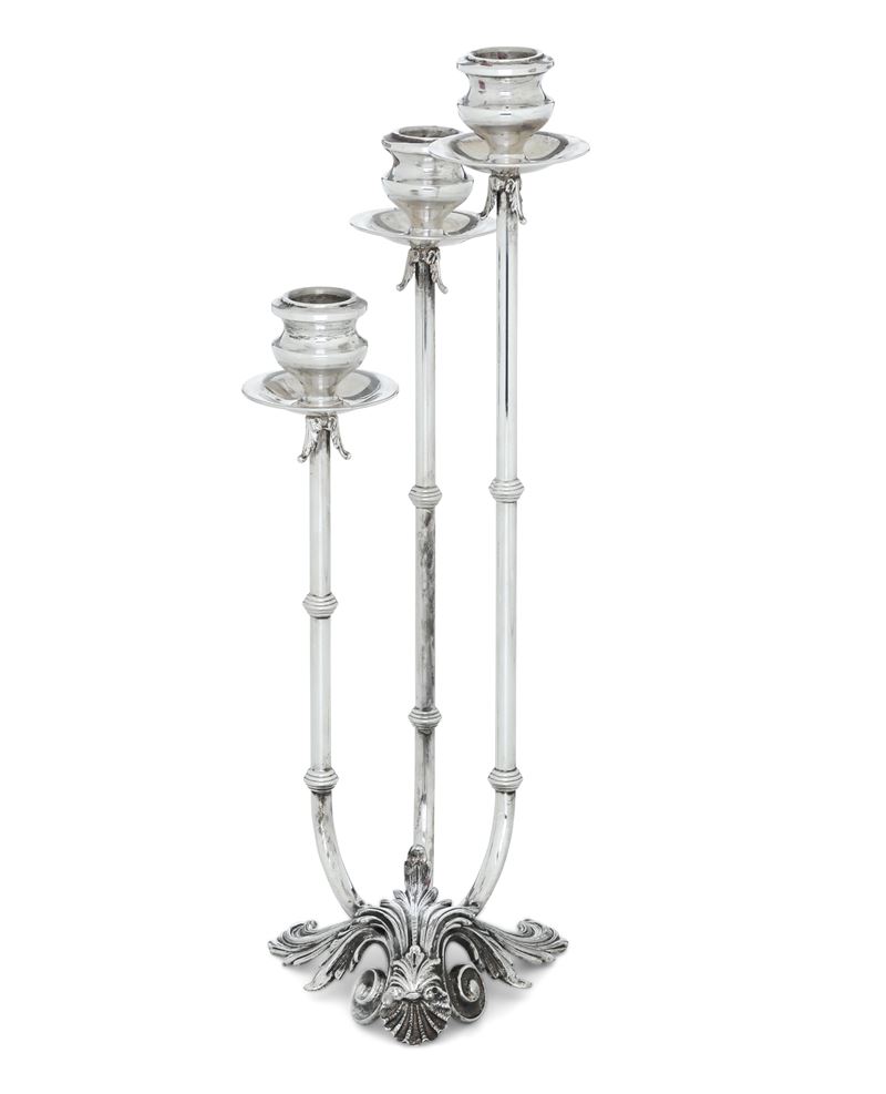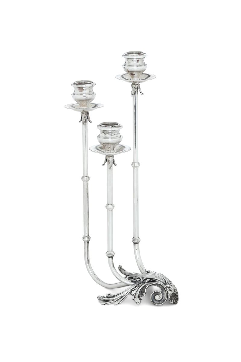 Candelabro a tre fiamme. Argenteria toscana del XX secolo, argentiere F.lli Raddi