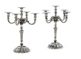 Coppia di candelabri a cinque fiamme. Argenteria artistica veneta del XX secolo. Argentiere Zaramella, Padova
