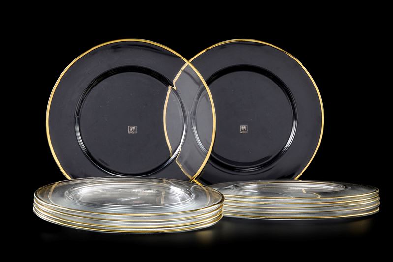 Dodici sottopiatti profilati in oro Italia, San Giovanni Valdarno, Manifattura IVV, fine del XX secolo