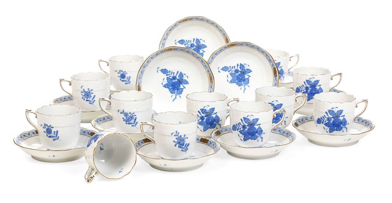 Dodici tazze da caffè "Appony Blue" Ungheria, Manifattura Herend, seconda metà del XX secolo