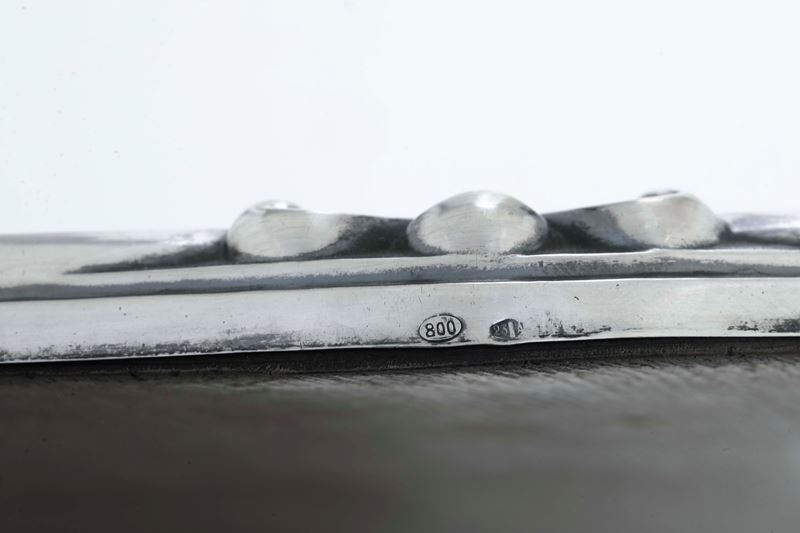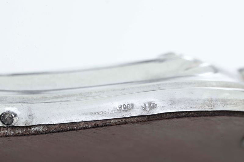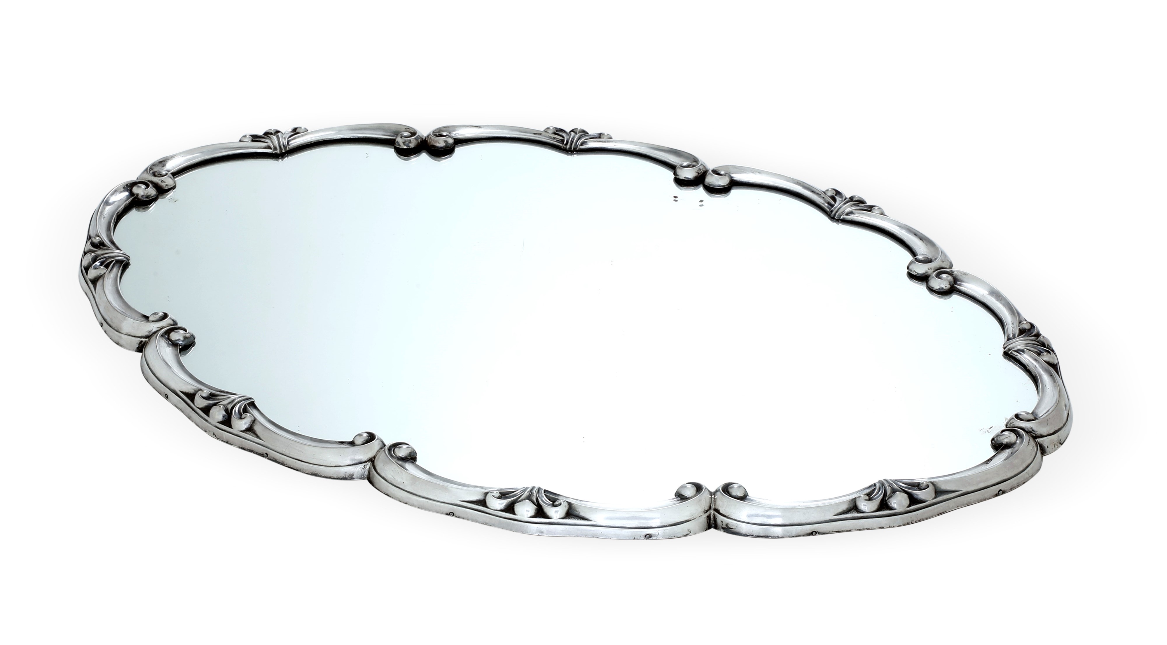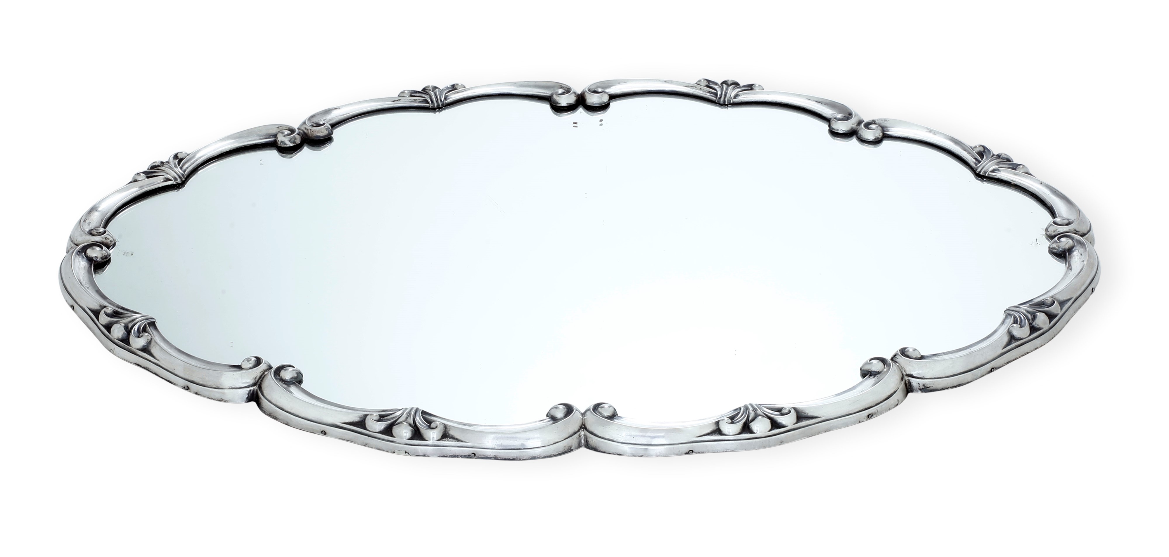 Présentoir a specchio con cornice sagomata. Argenteria italiana del XX secolo, argentiere Guerci & C., Alessandria