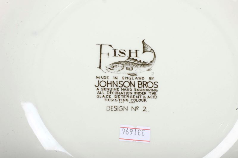 Terraglia forte. Marca: Simbolo grafico con “Fish … Johnson Bros …” in bruno. Conservazione: ottima