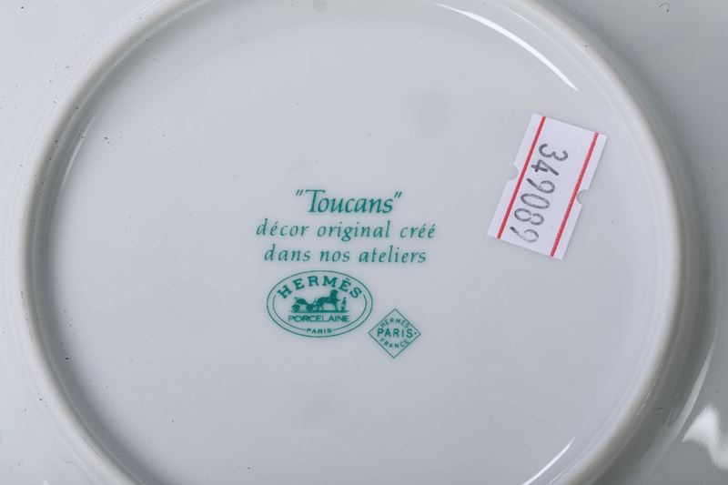Porcellana policroma. Marca: “Toucans" - décor original créé dans nos ateliers"; "Hermès Porcelaine Limoges” in verde. Conservazione: ottima
