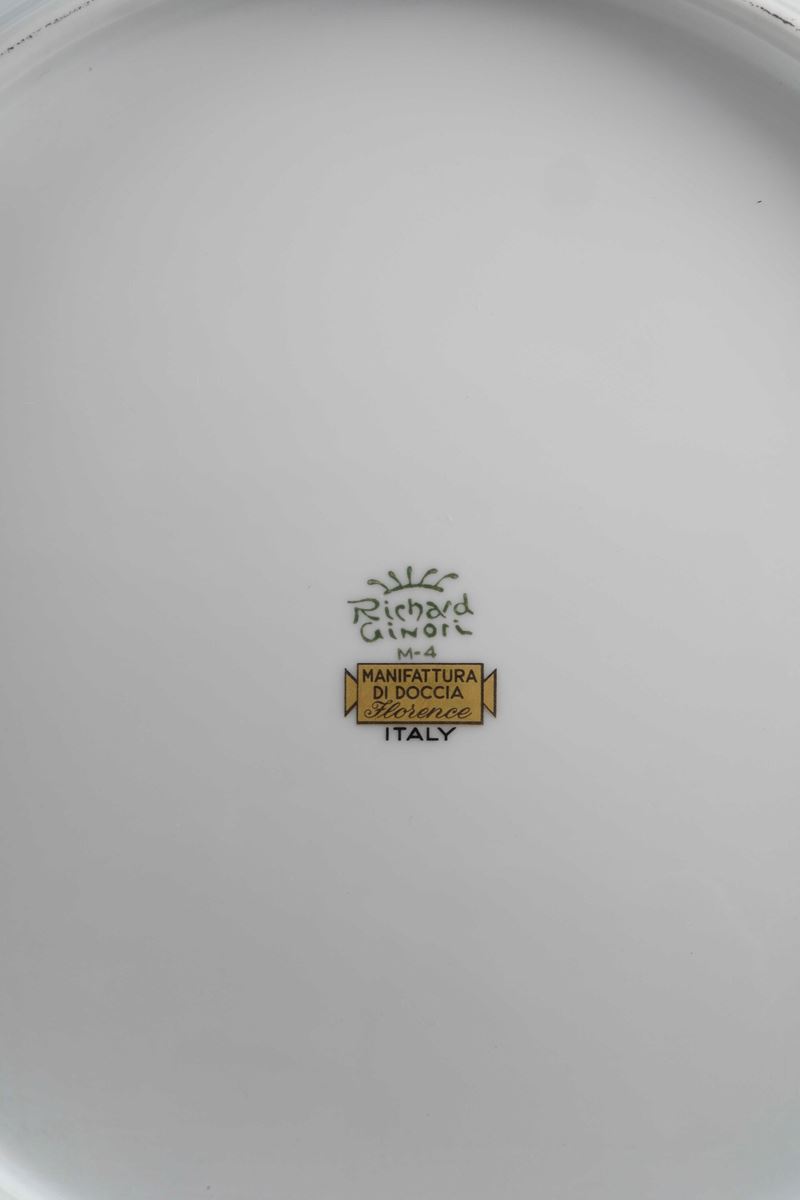 Porcellana. Marca: “Richard Ginori” con corona, in verde; cartiglio oro con “Manifattura di Doccia Florence” in nero, Italy in nero. Conservazione: ottima