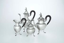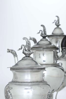 Servizio da tè e caffè di gusto neoclassico. Argenteria artistica fiorentina, marchi in uso dal 1935 al 1945. Argentiere [..]