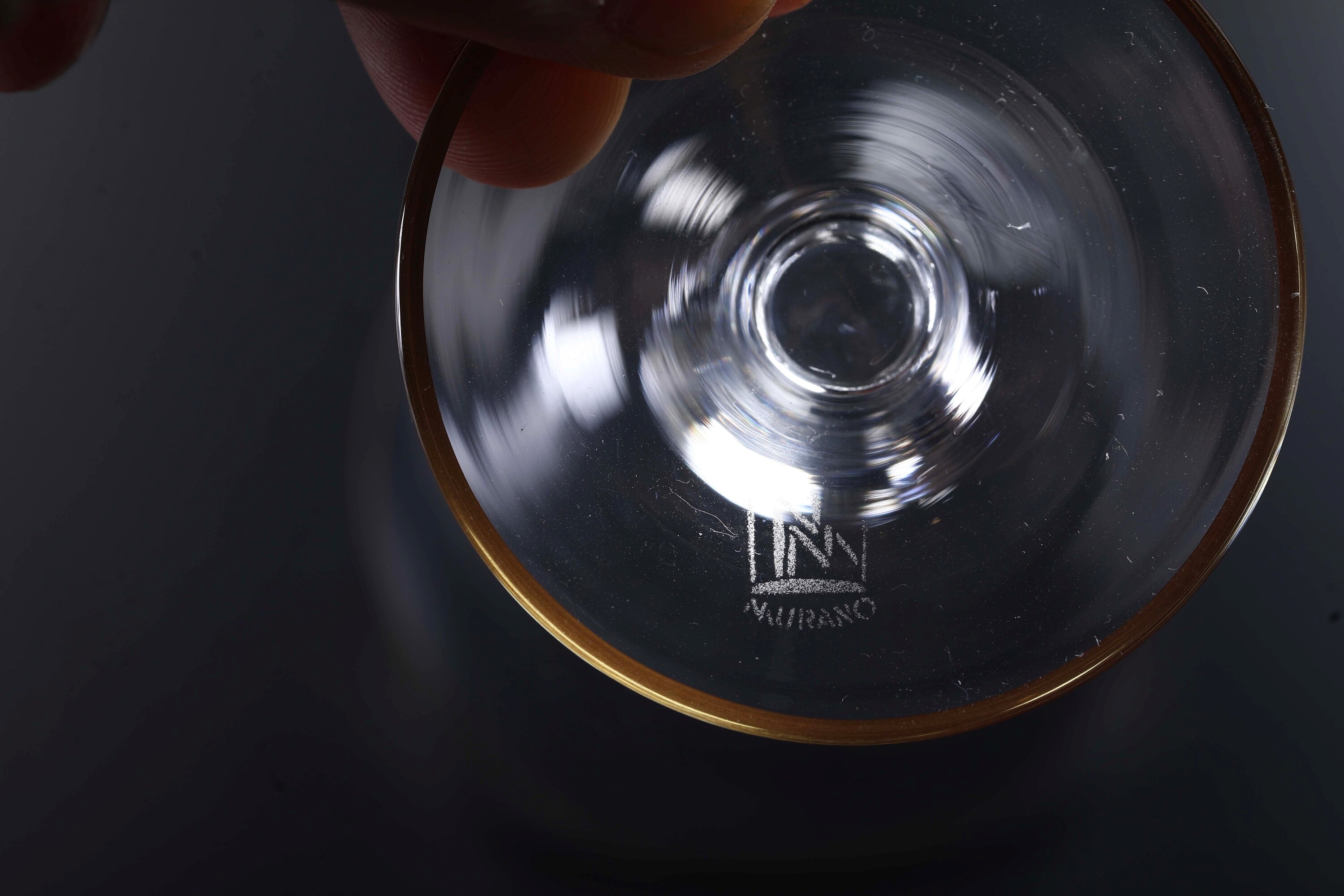 Questi cristalli sono realizzati a mano, seguendo le antiche tecniche veneziane tradizionali, e sono bordati da un filo d’oro per mise en place classiche ed eleganti.