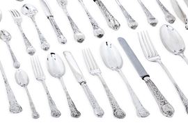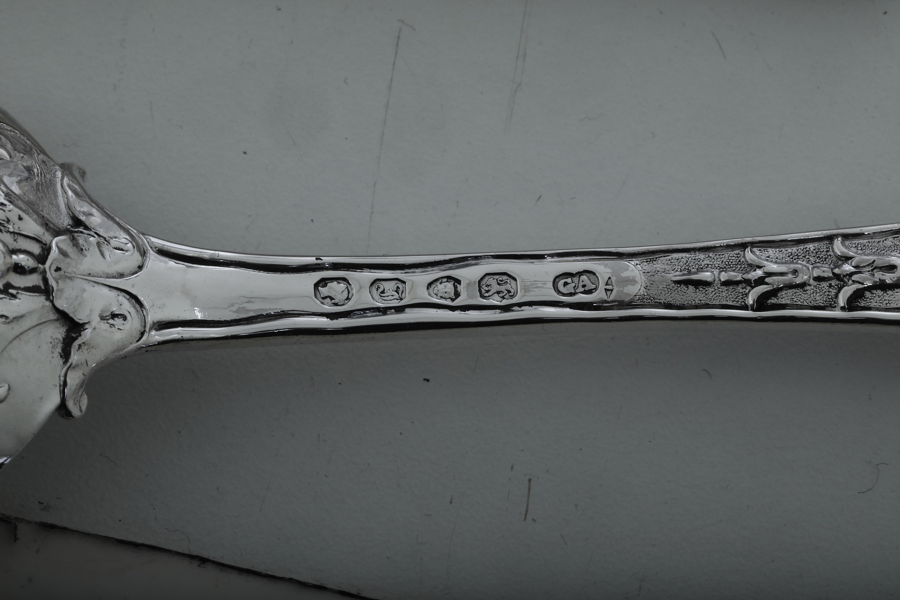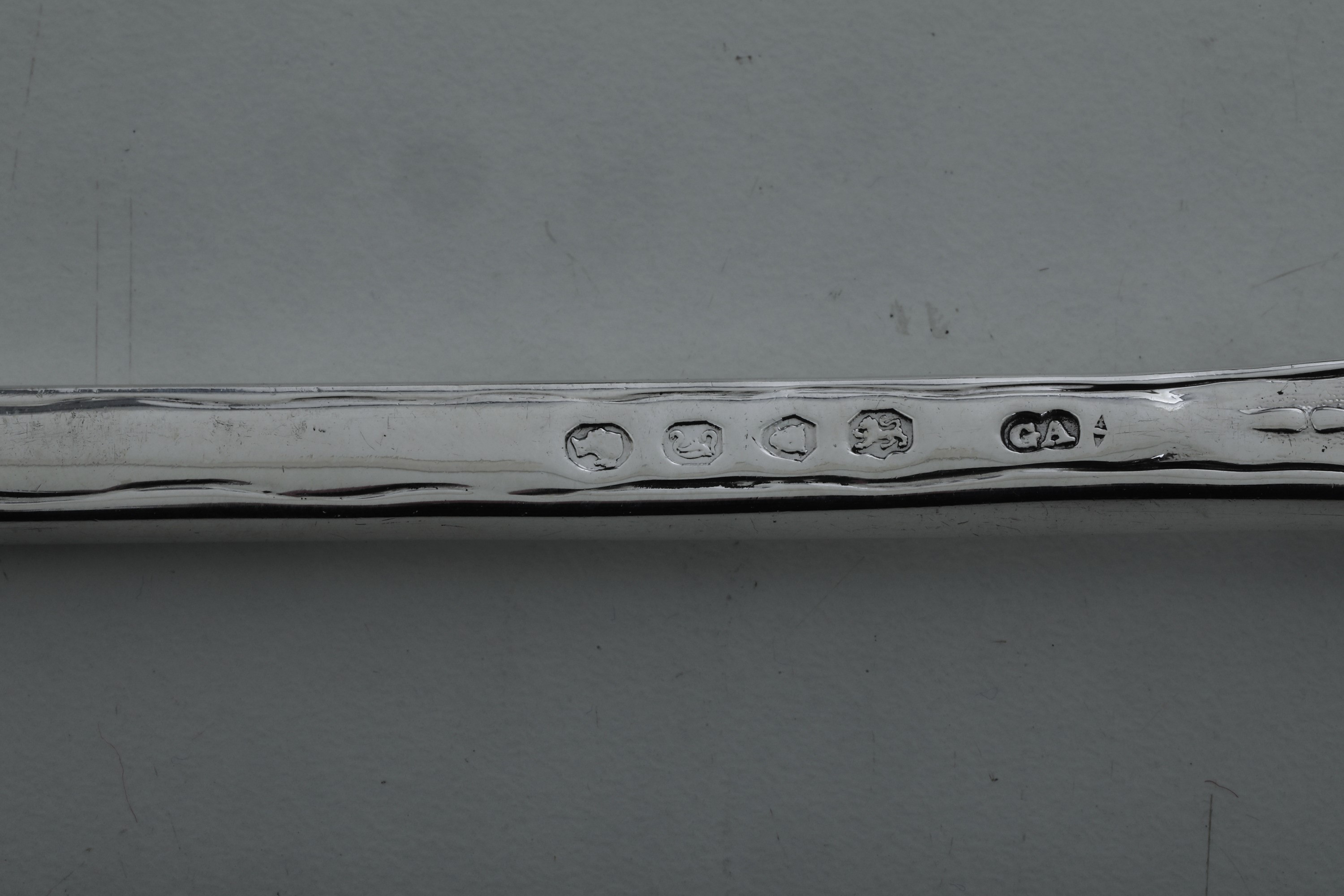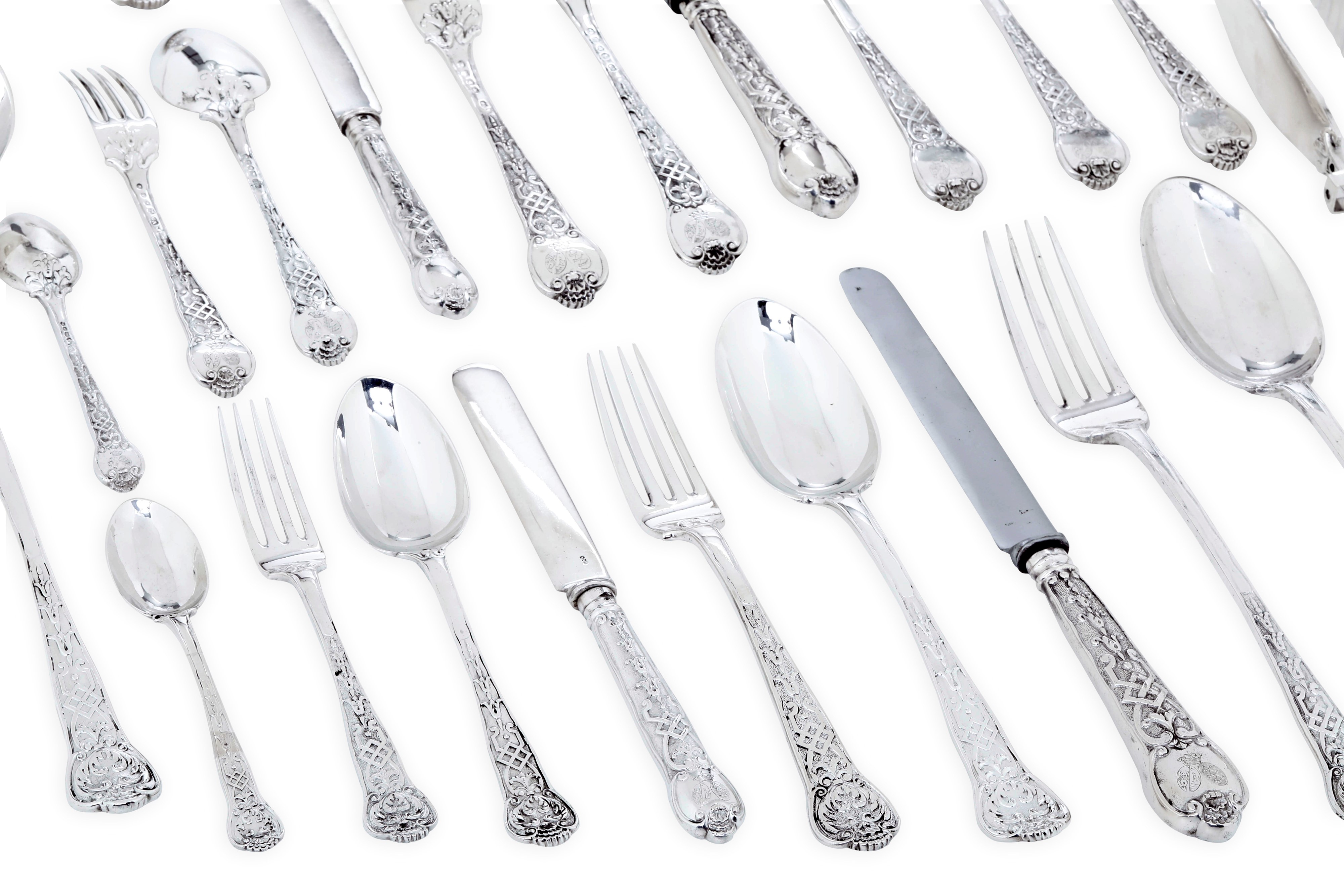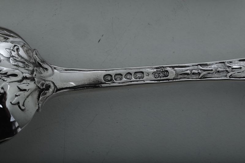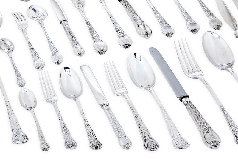 Servizio di posate. Londra 1844, Argentiere G.W. Adams e Londra 1874, argentiere I S H con corona (non identificato)