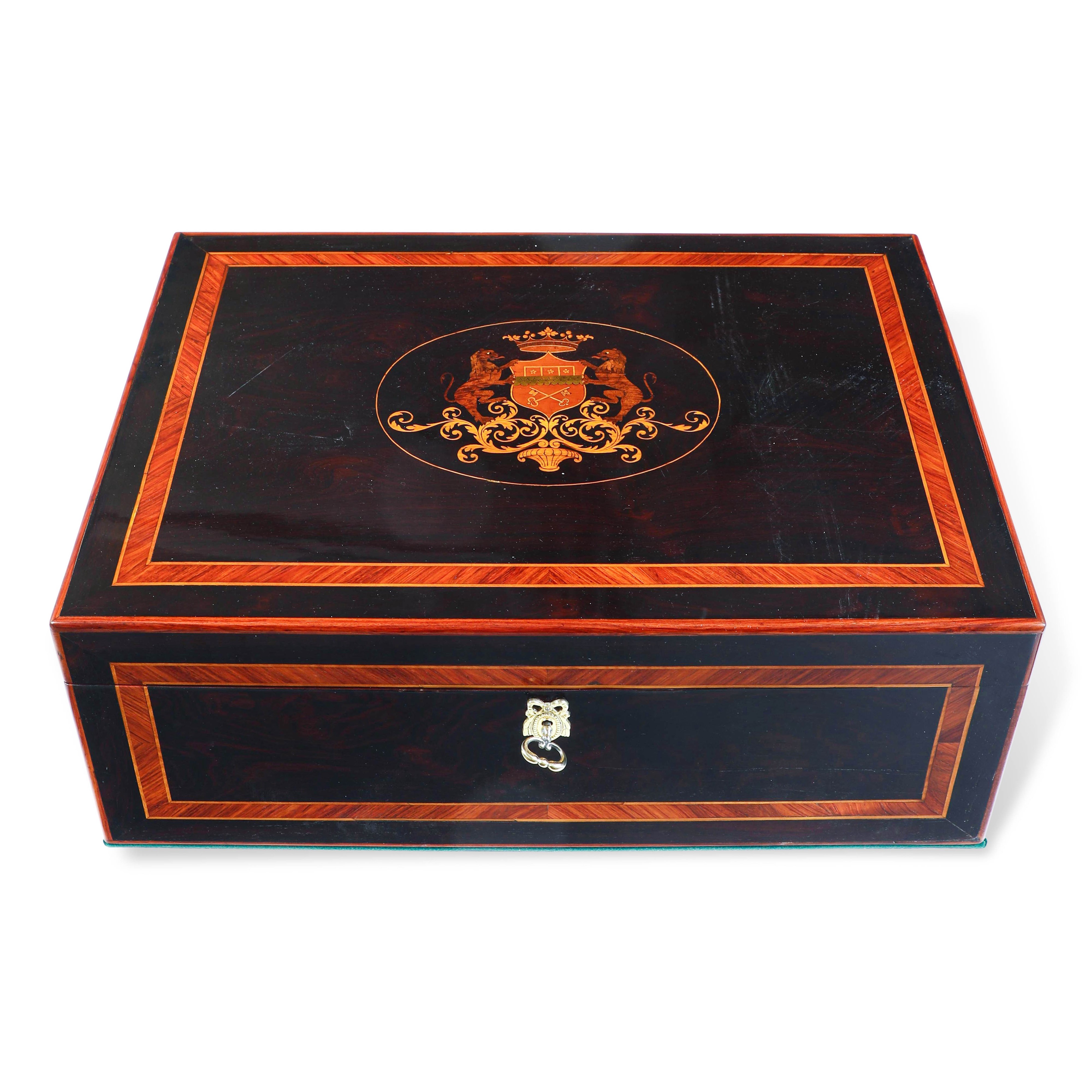 Entro custodia in legno intarsiato e filettato.