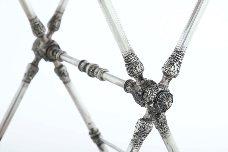 Argento fuso e sagomato; cavalletto argento 800, il resto argento 925