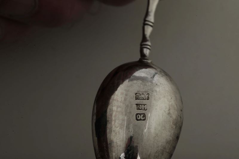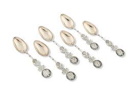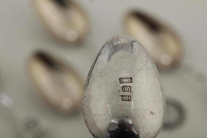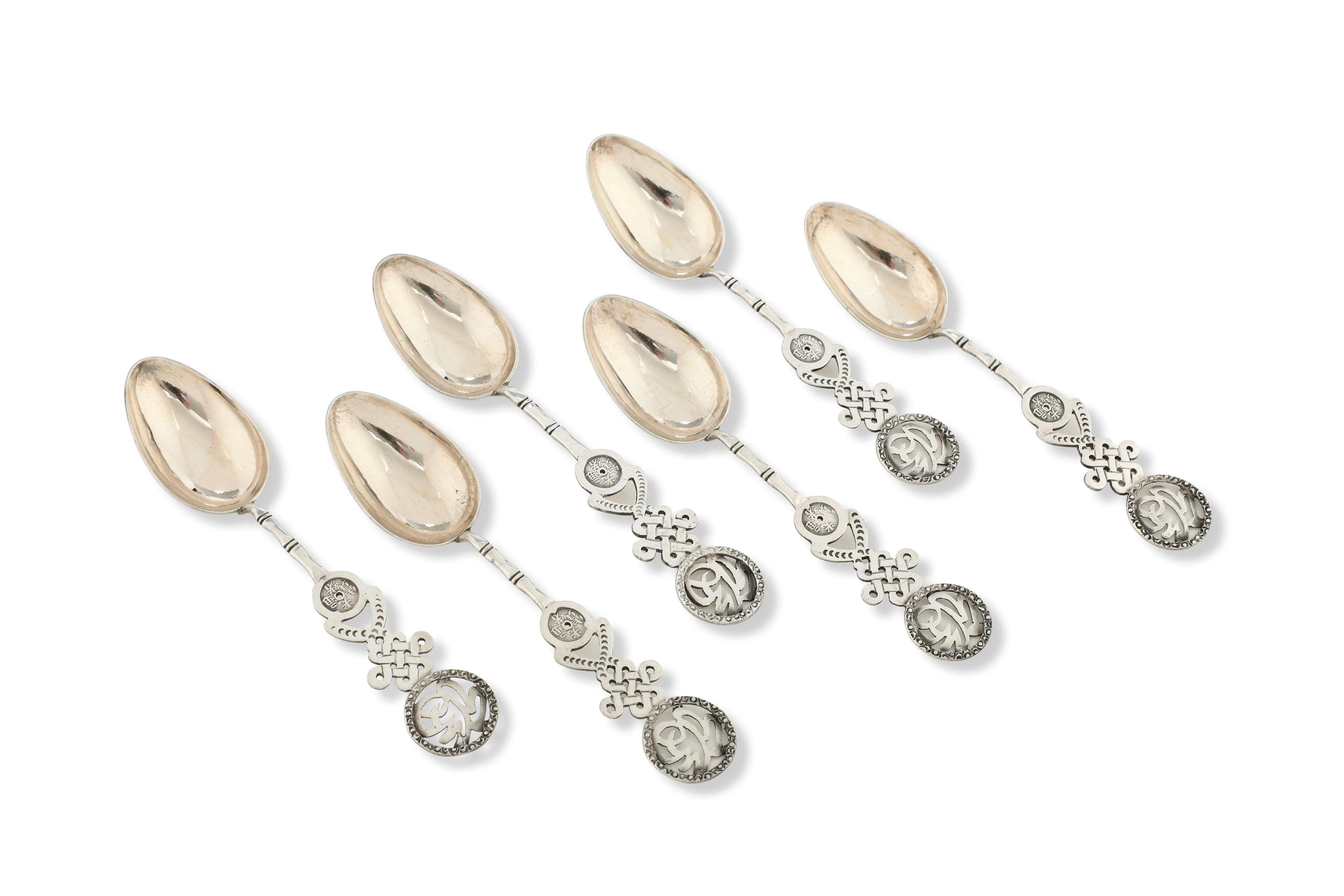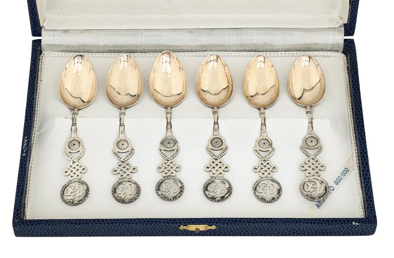 Set di sei cucchiai con simboli ben auguranti. Cina, inizio XX secolo