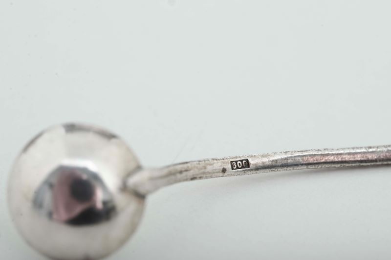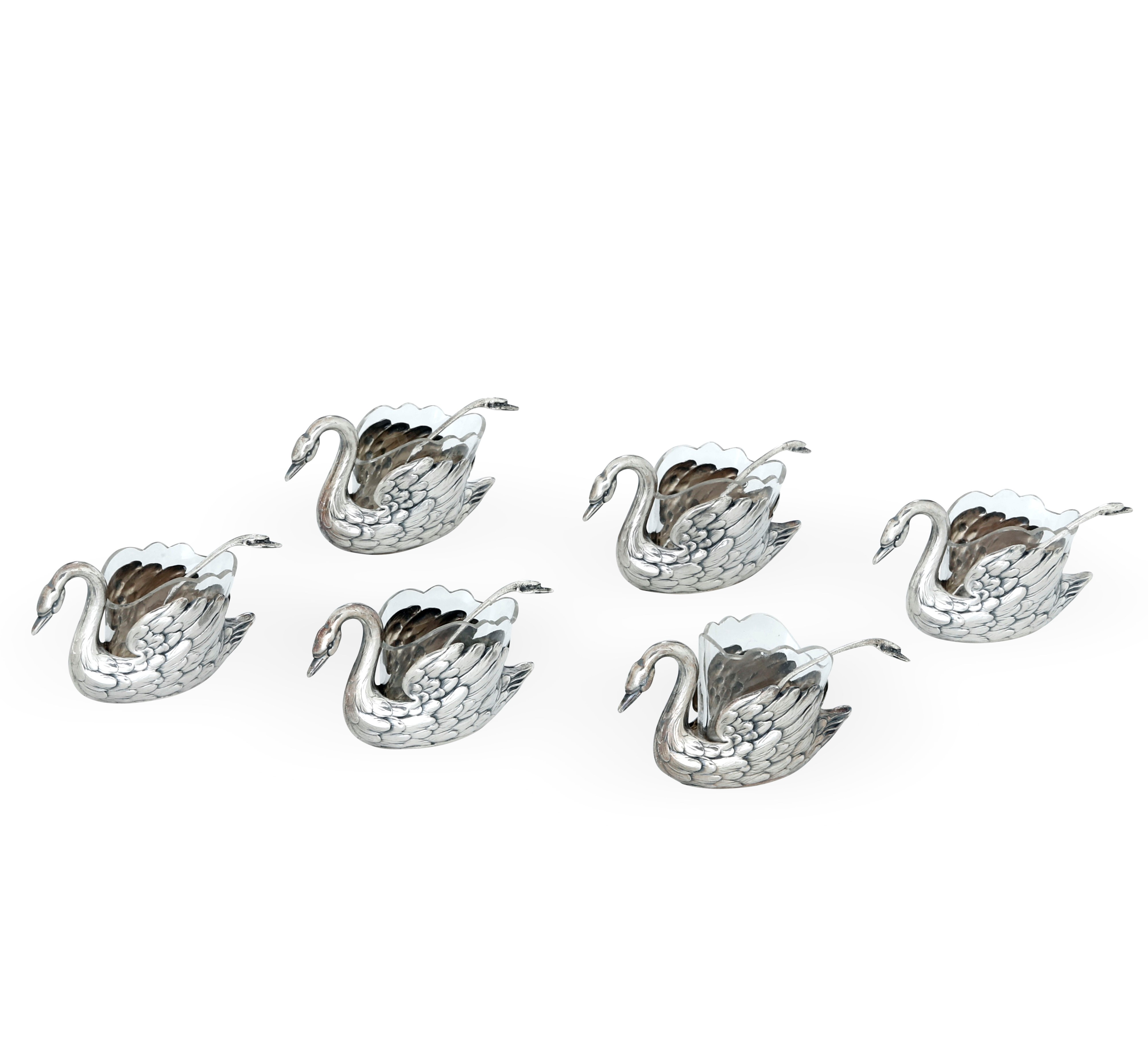 Set di sei salini con cucchiaio a forma di cigno. Germania XX secolo