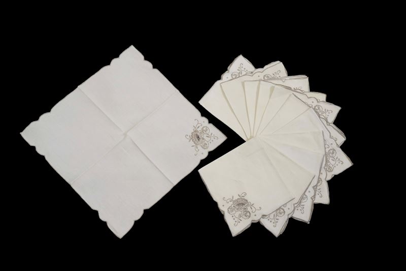 Dimensioni: tovaglia (cm 238x164); tovaglioli (cm 40x40). Conservazione: ottima