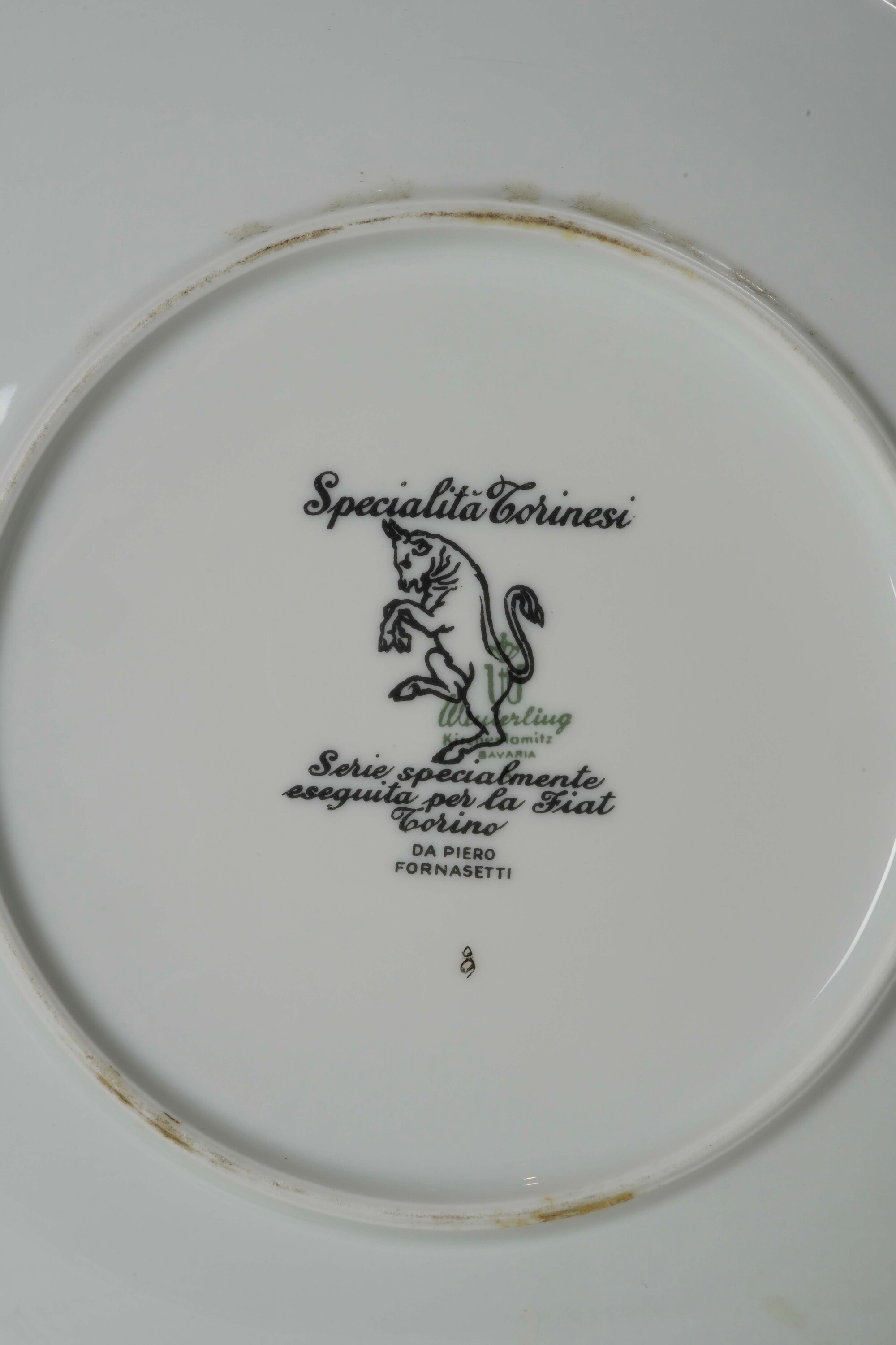 Questi piatti fanno parte della serie "Specialità italiane" e vi sono descritte le specialità torinesi. Appartengono alla serie realizzata per la Fiat di Torino, come si evince dalla scritta sul retro