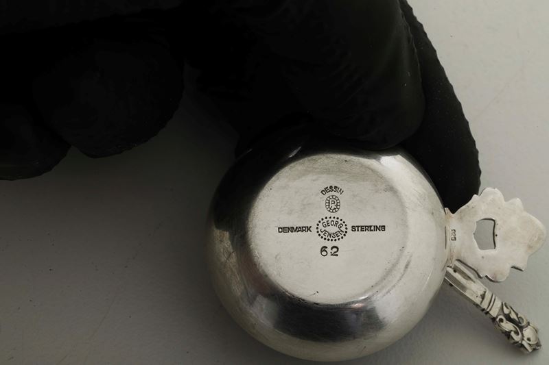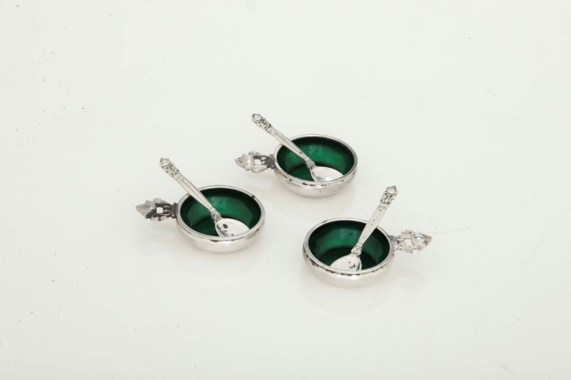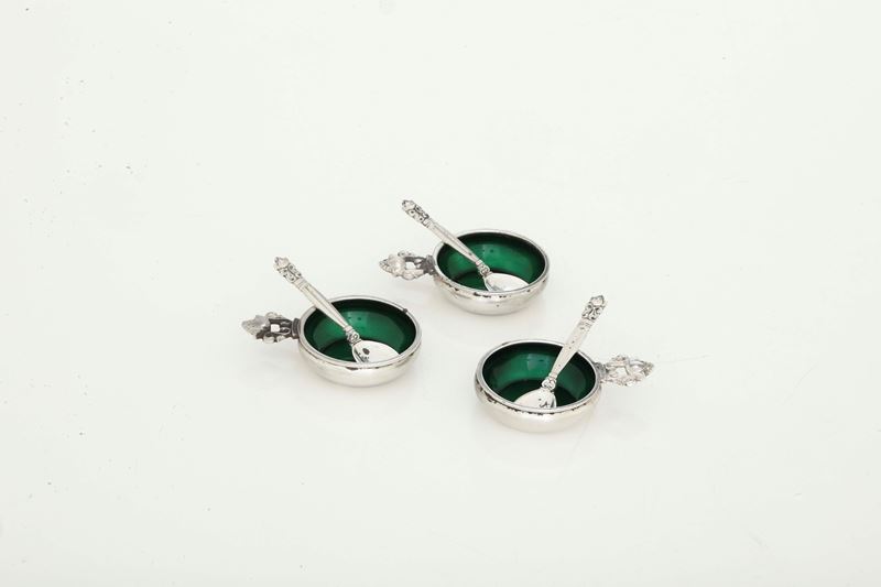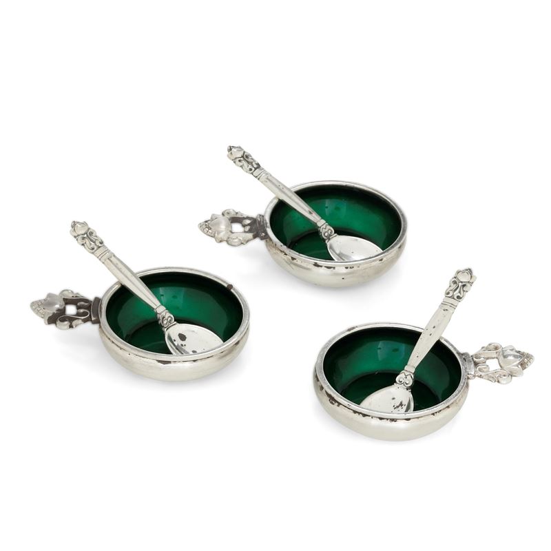 Tre salini con cucchiaio. George Jensen, Danimarca, XX secolo