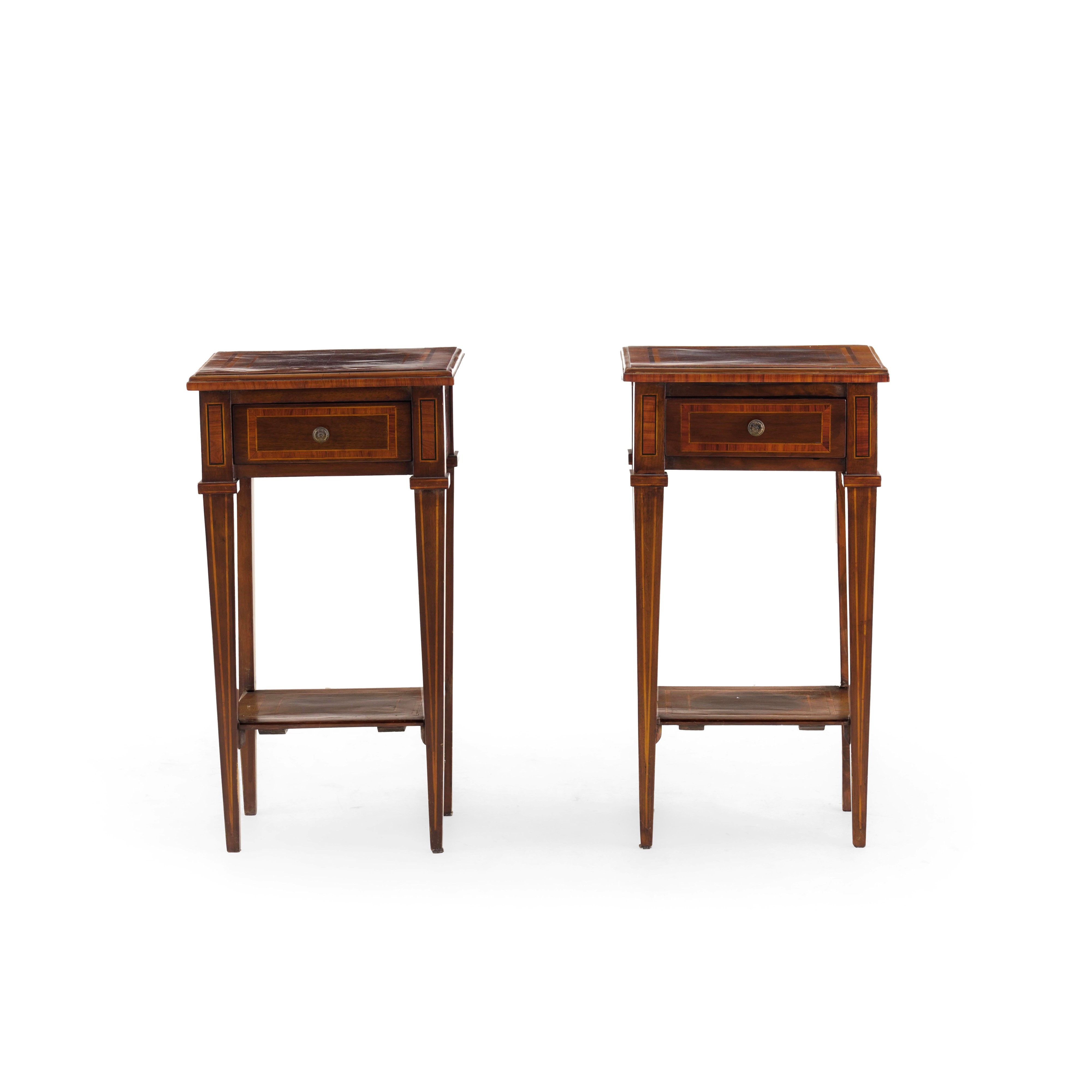 Coppia di mobiletti da centro lastronati e filettati. XVIII-XIX secolo