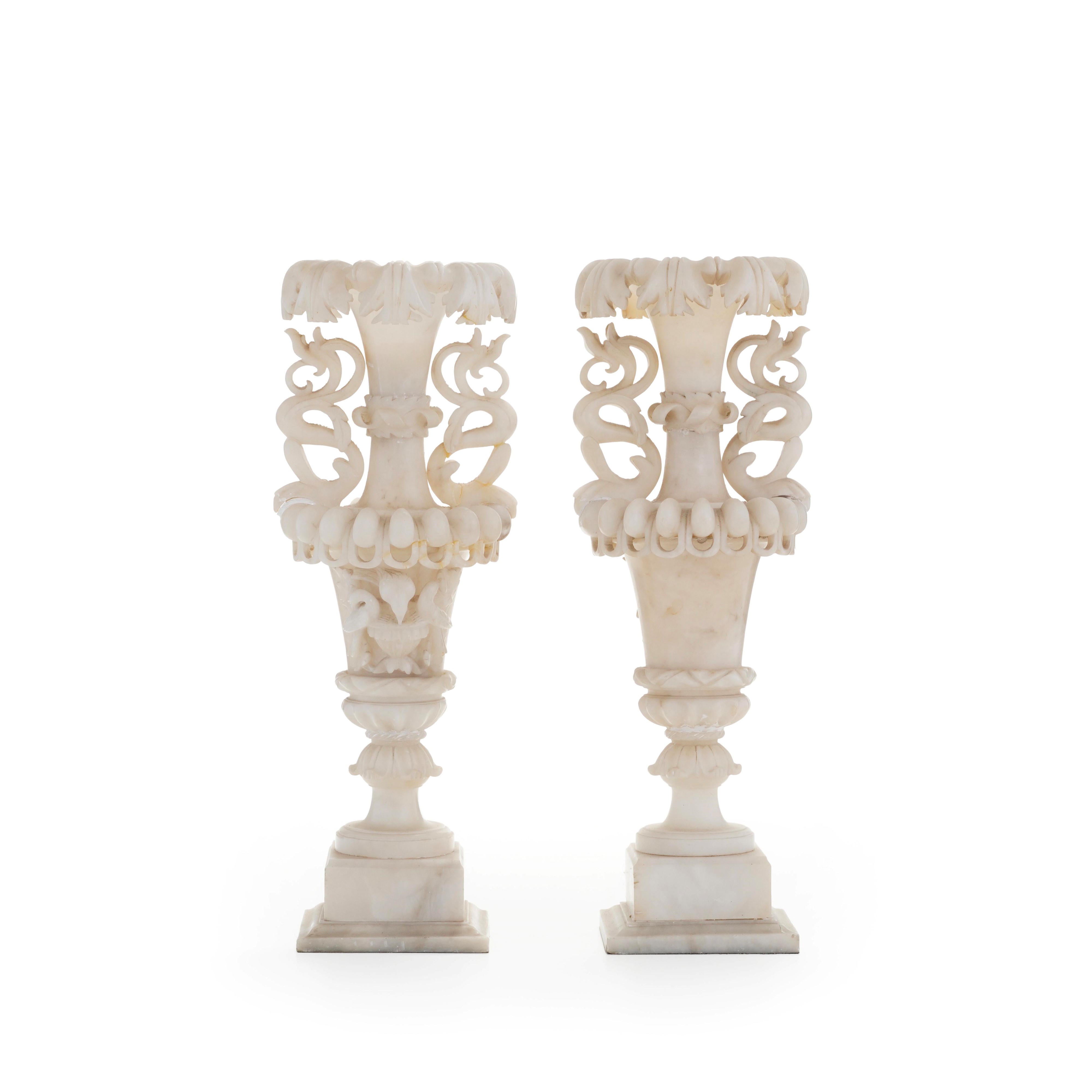 Coppia di vasi in alabastro scolpito