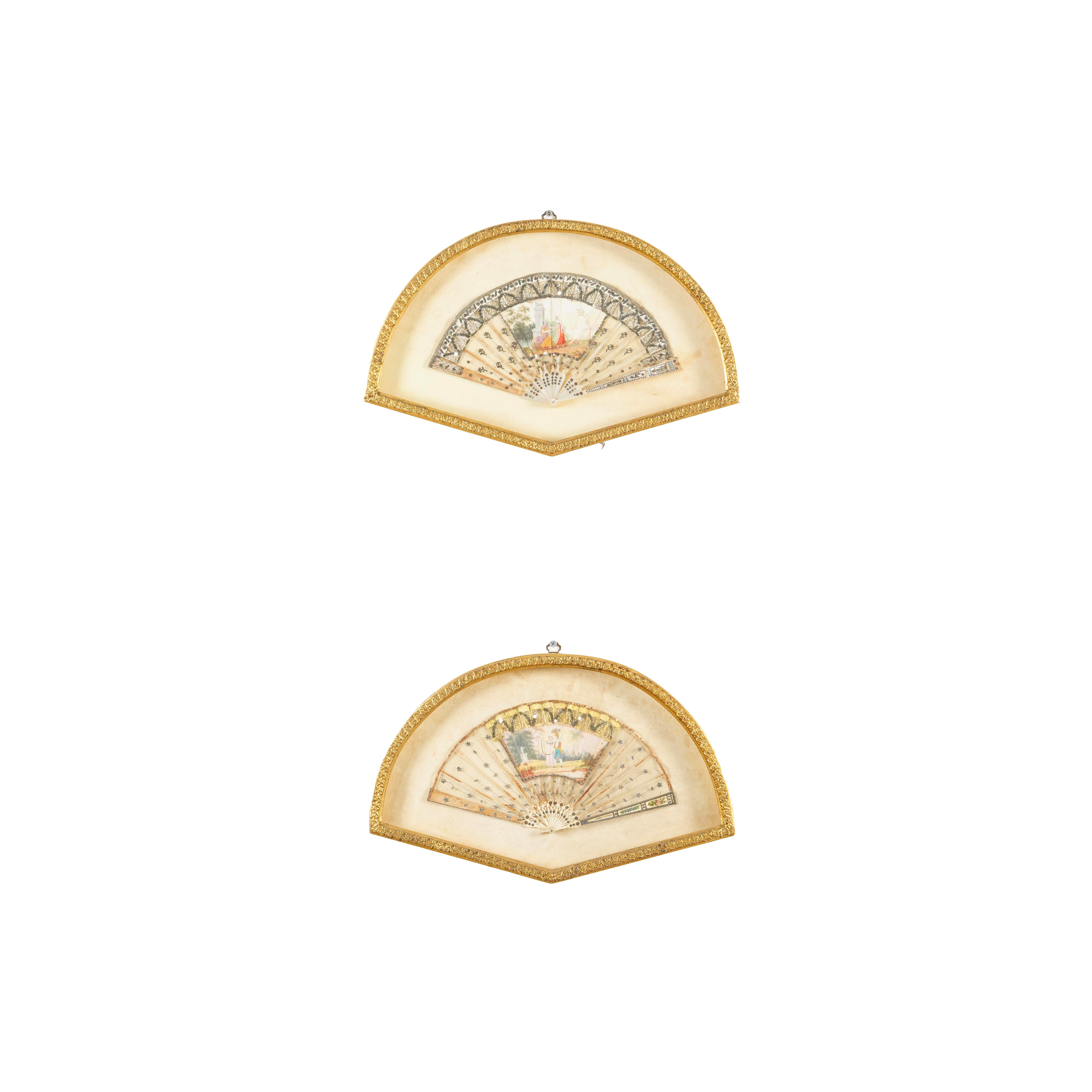 Decorati con applicazioni in metallo e dipinti su carta con scene di genere. Entro teche