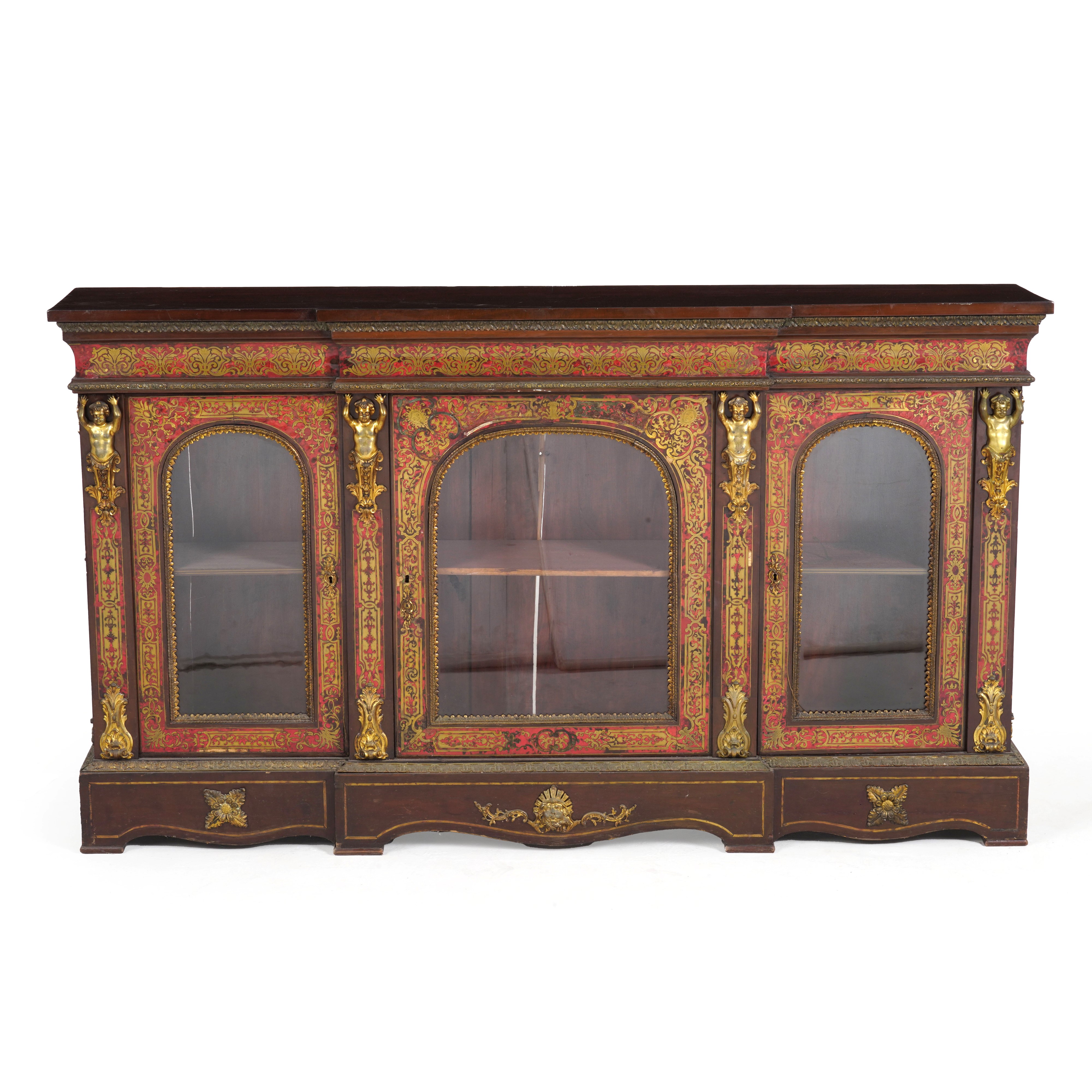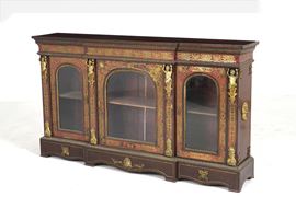 A tre ante a vetri con montanti a foggia di erma, applicazioni decorative e intarsi in metallo dorato
