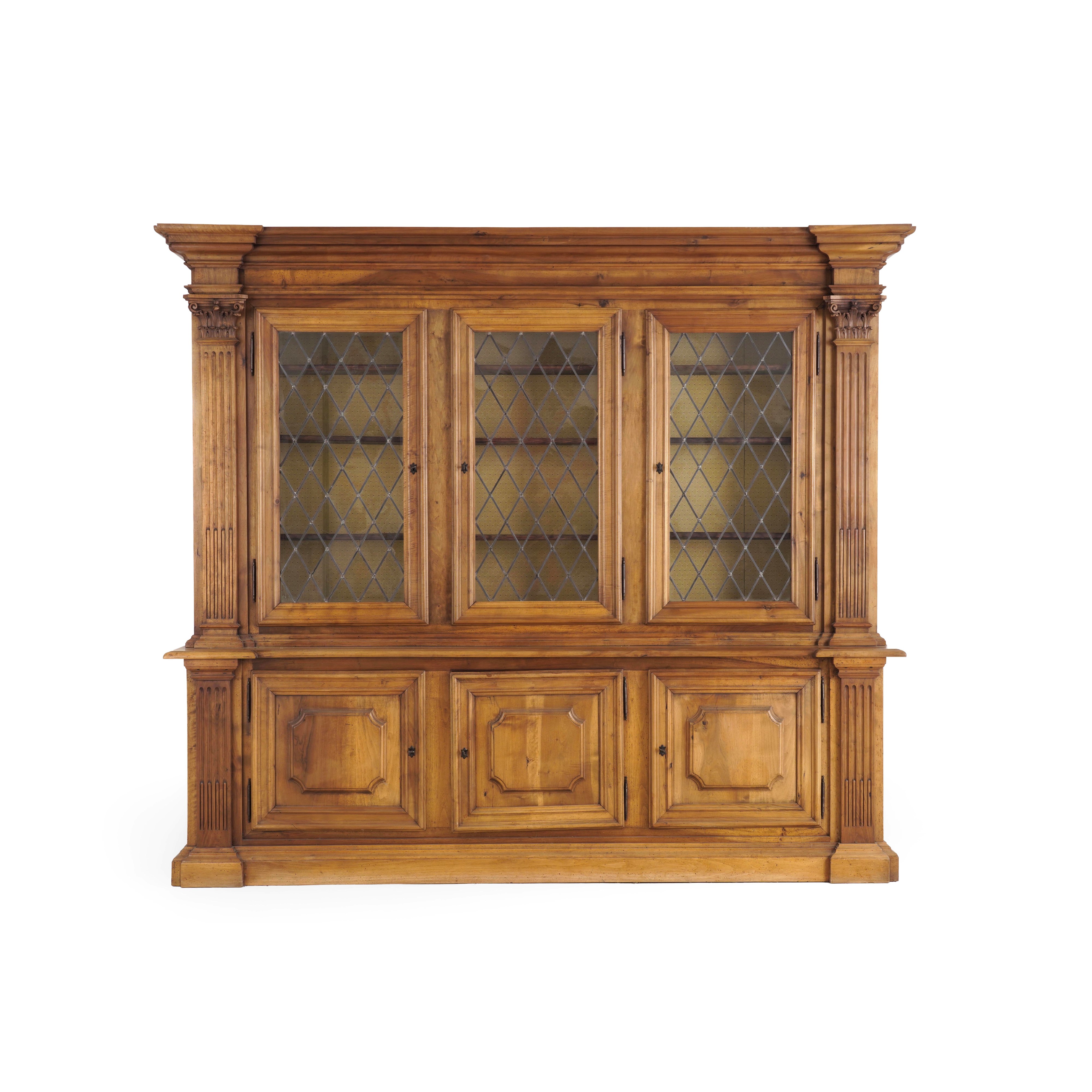 Grande libreria architettonica a doppio corpo in stile secentesco