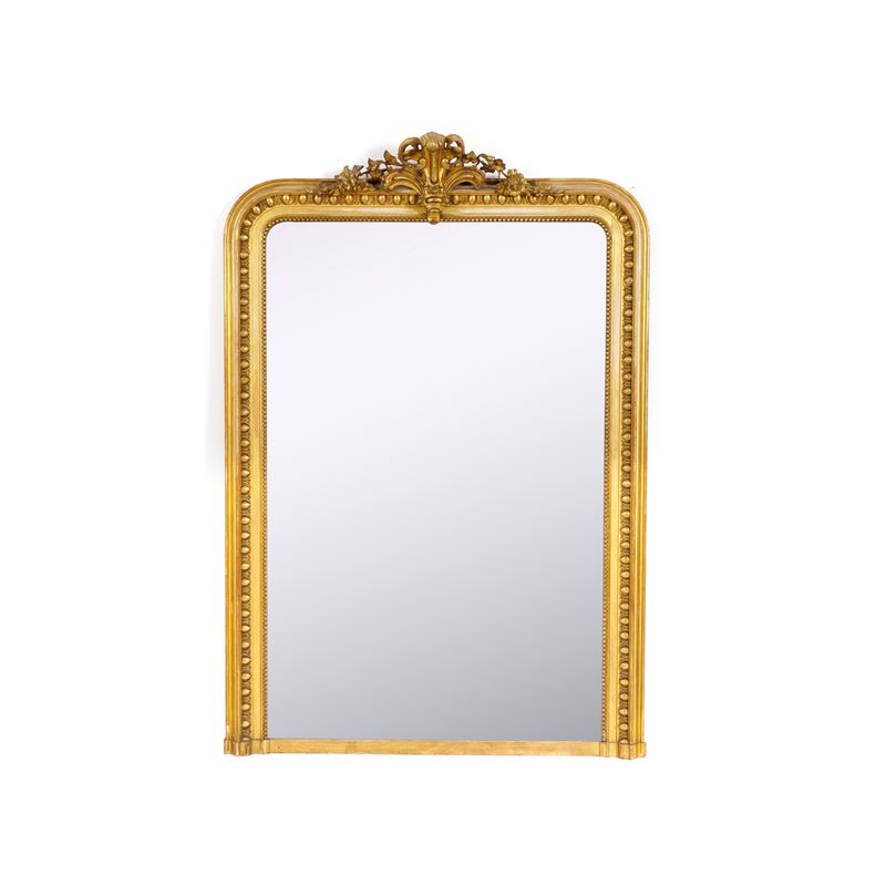 Grande specchiera dorata in legno e pastiglia. XIX-XX secolo