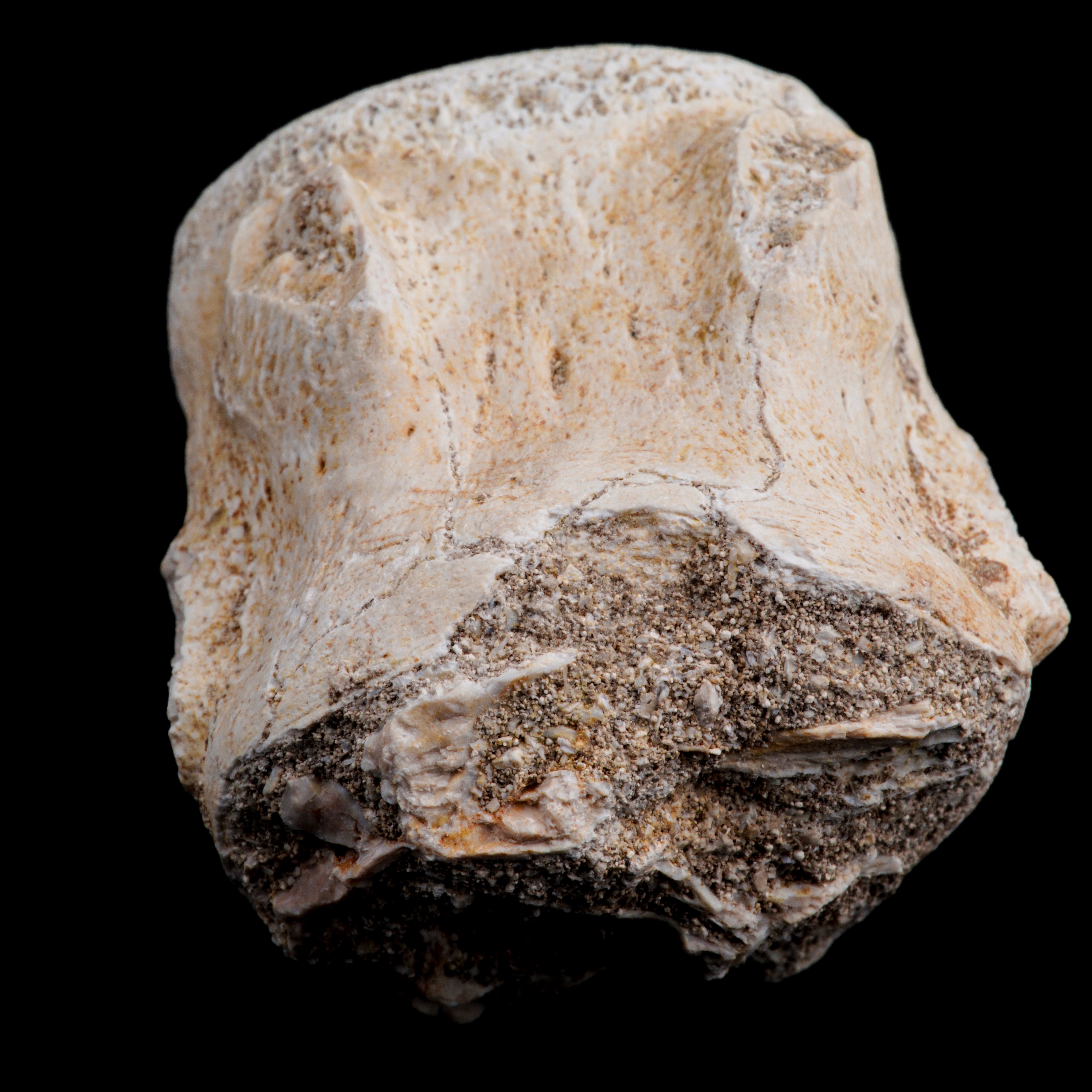 Due denti senza radica, una rdice di dente, una vertebra.