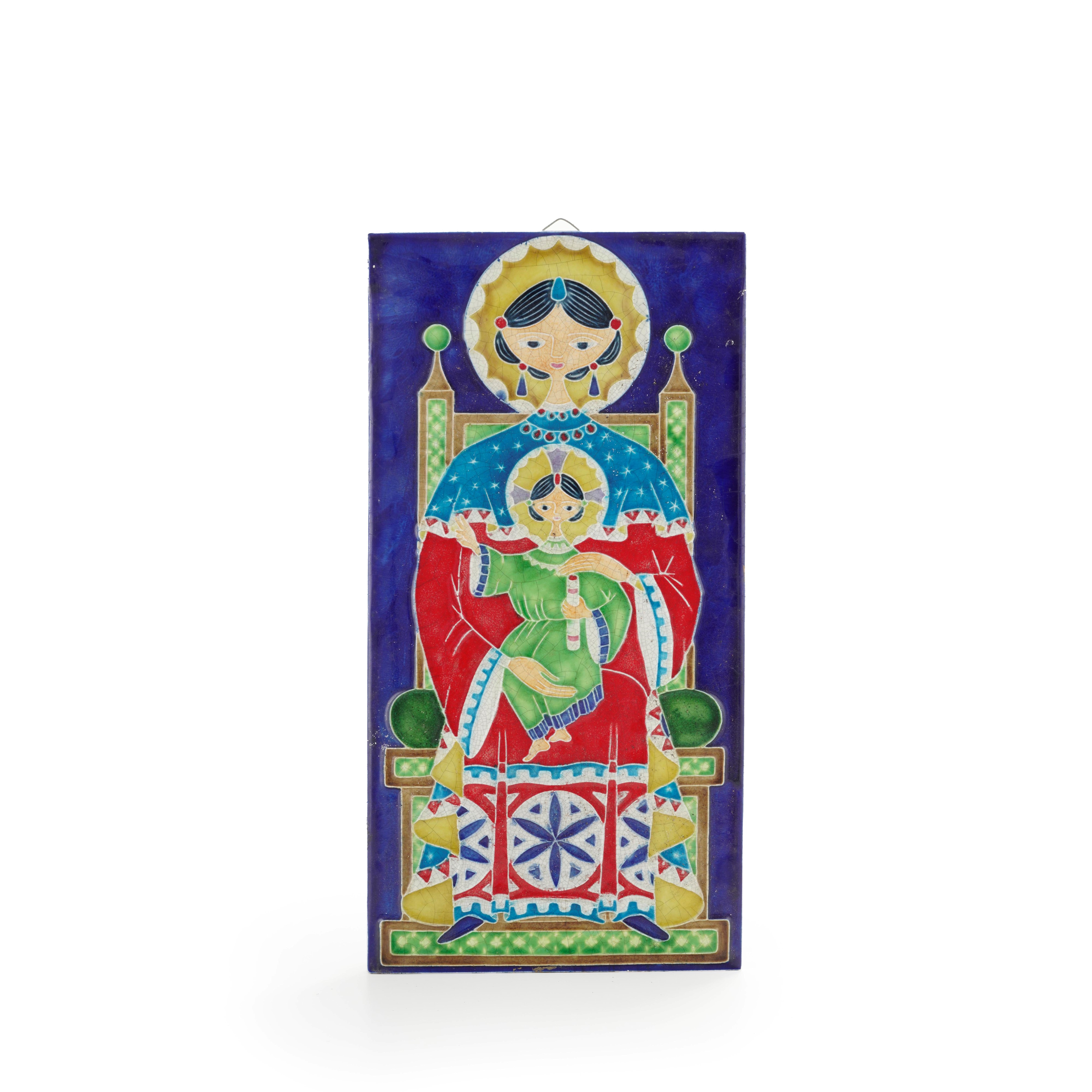 Placca in maiolica raffigurante Madonna in trono con Bambino
