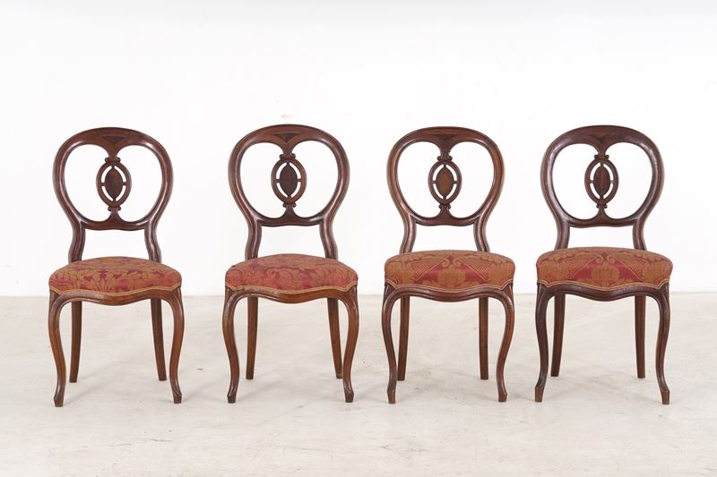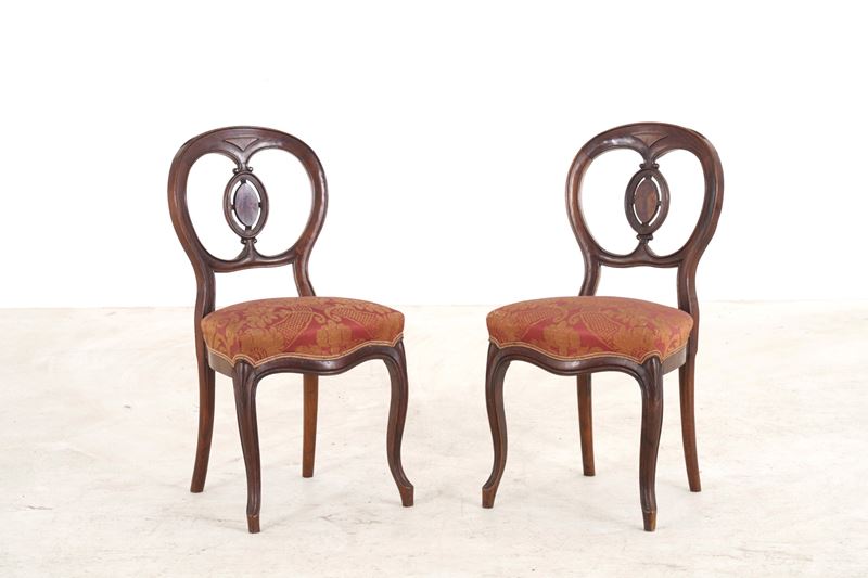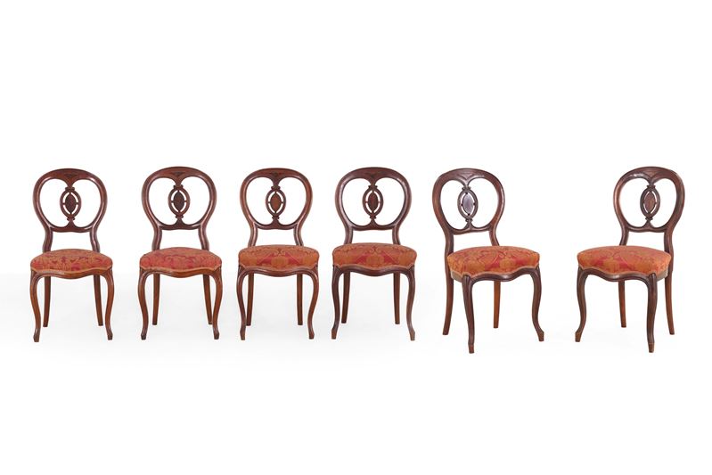 Sei sedie in legno intagliato. XIX secolo