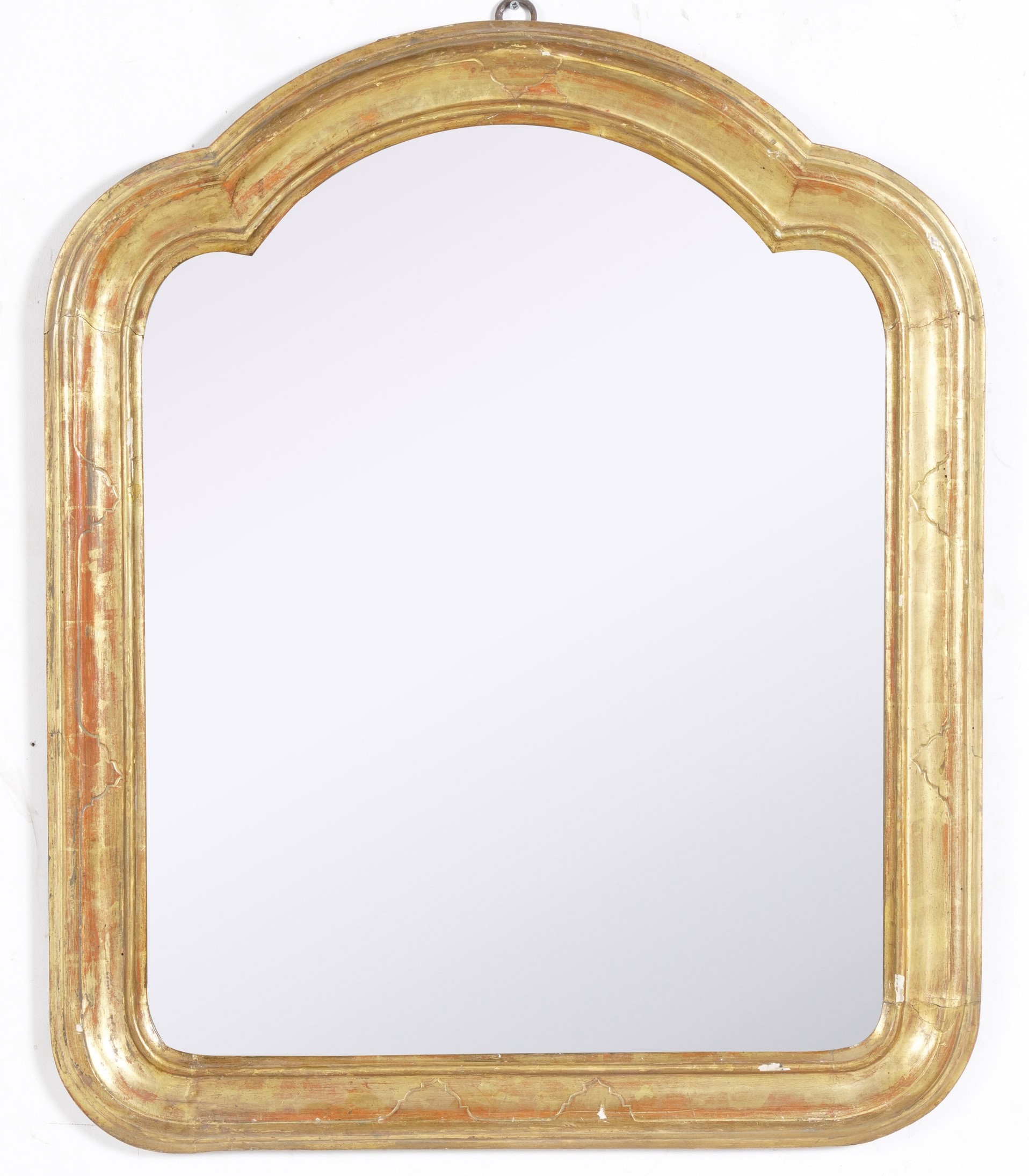 Specchiera centinata in legno intagliato e dorato. XIX secolo