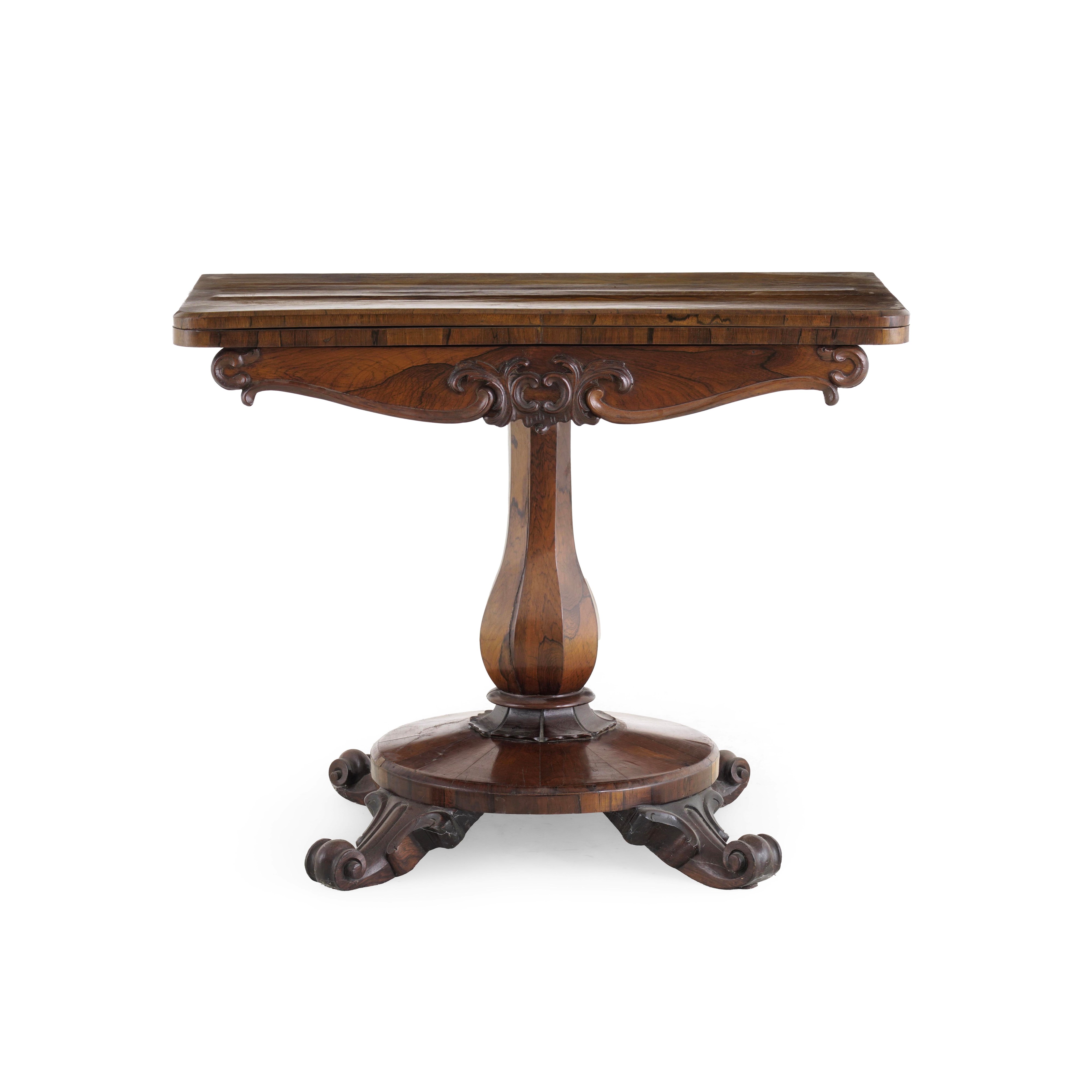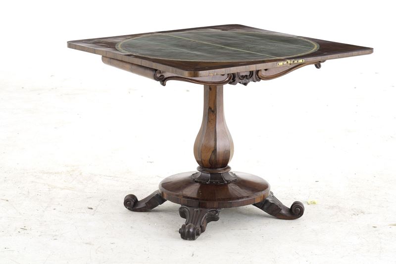 Tavolino apribile in legno intagliato. XIX secolo