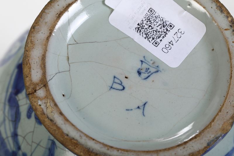 La marca ci permette di assegnarlo alla produzione della manifattura savonese di Giovanni Andrea Bianchino nell’ultimo quarto del Seicento. Pezzi molto simili sono conservati nella collezione civica savonese: vedi L.Pessa, Le ceramiche liguri. Musei e collezioni della città di Genova, Milano 2005, pp. 54-55, n. 38