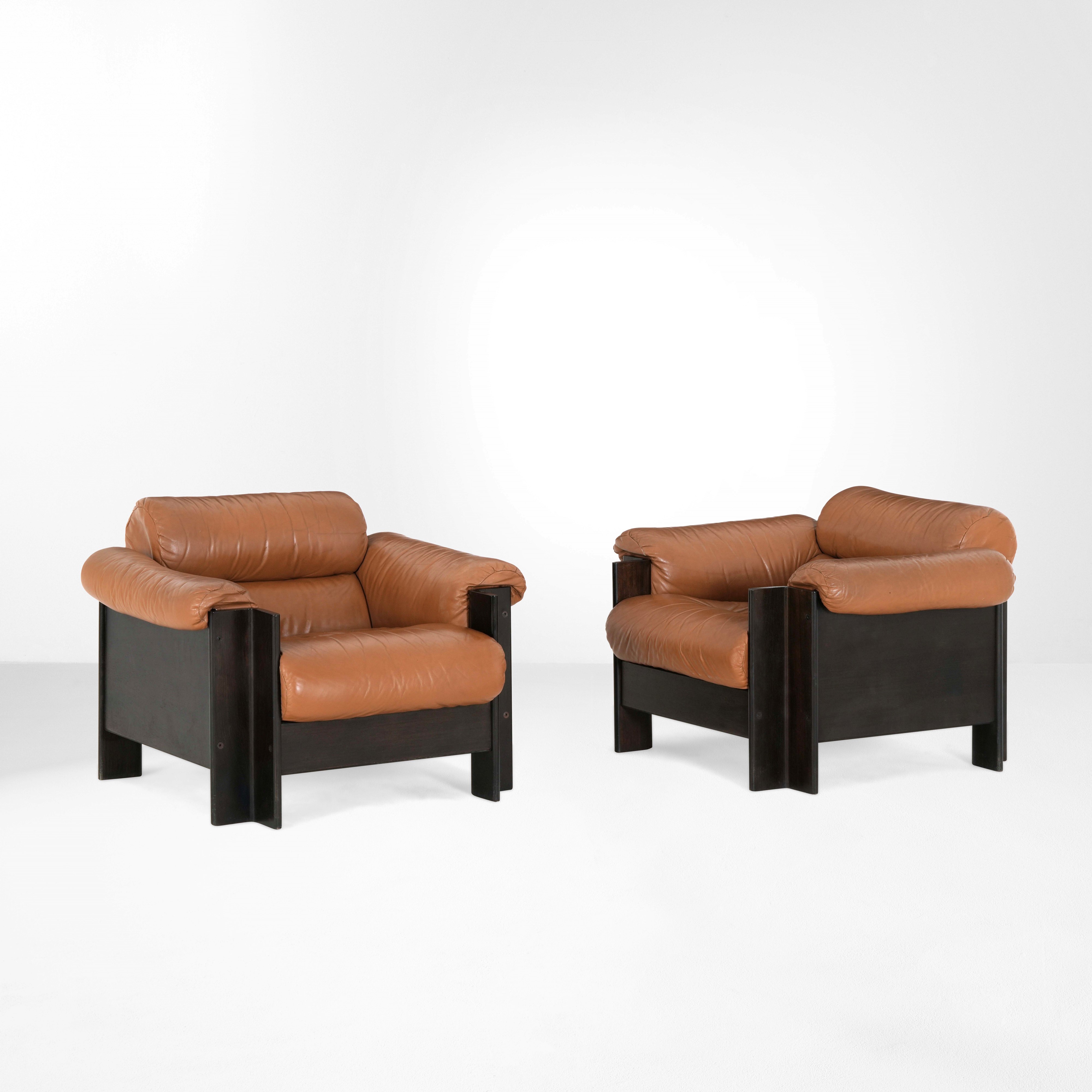 Struttura in legno ebanizzato e rivestimento in cuoio.