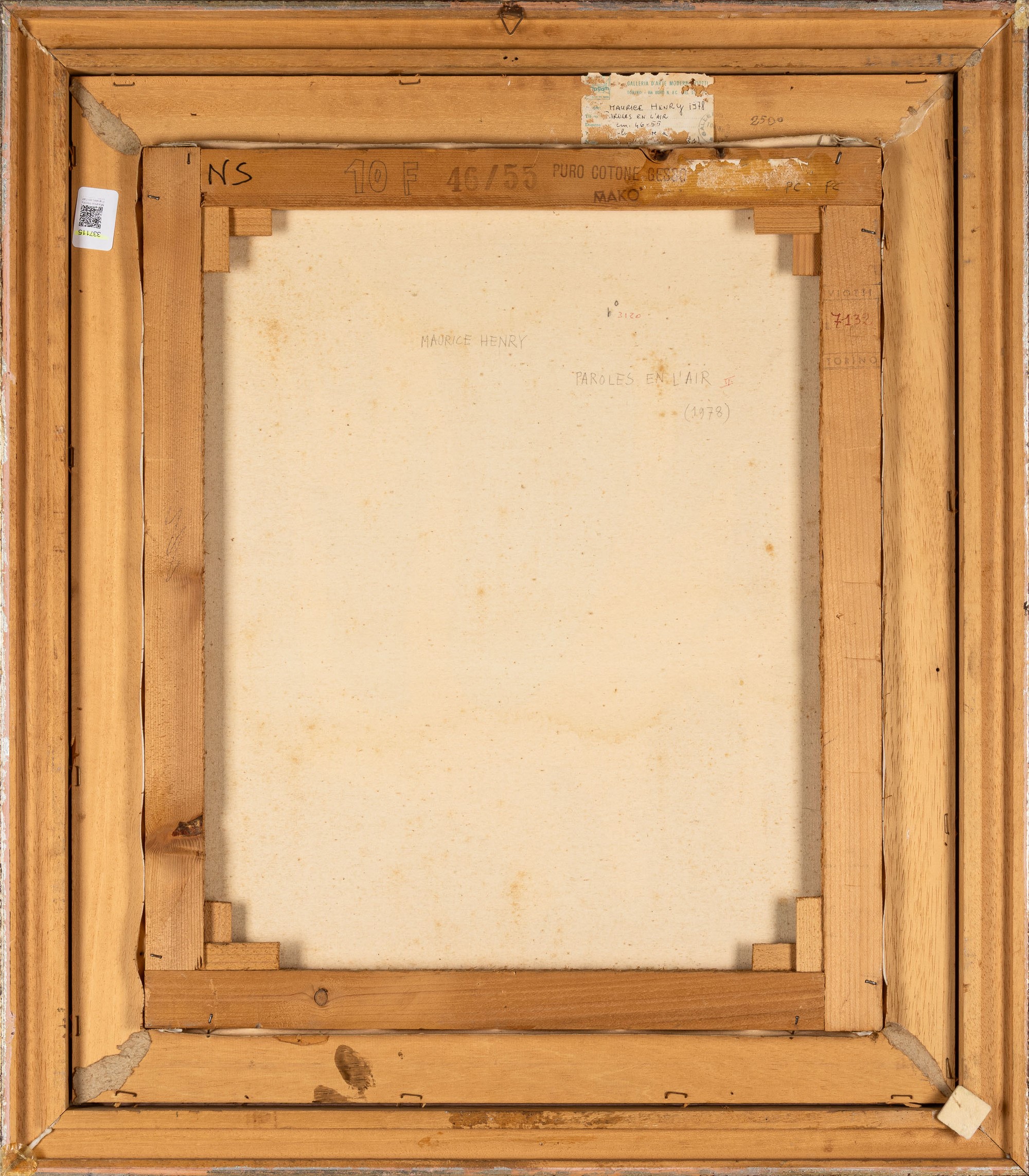 etichetta al retro della Galleria Bonaparte, Milano