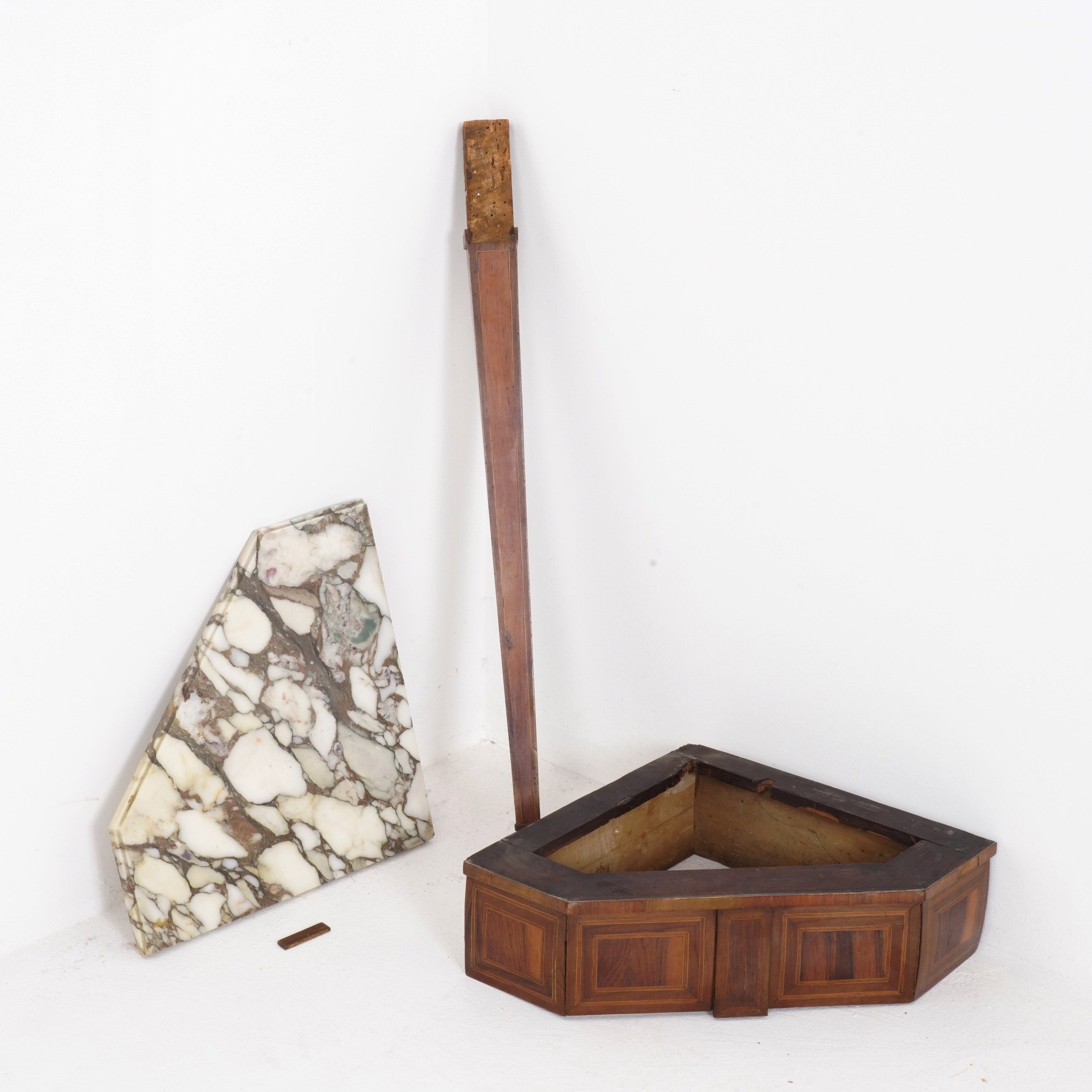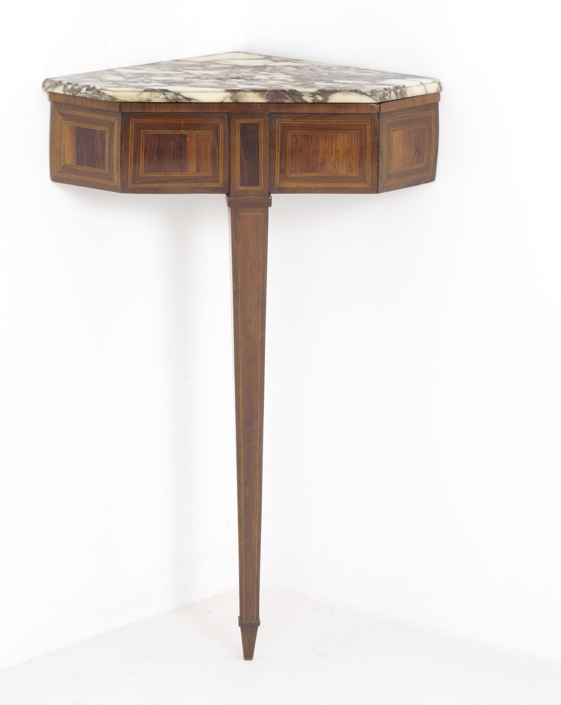 Coppia di consolle angolari Luigi XVI lastronate e filettate. XVIII-XIX secolo