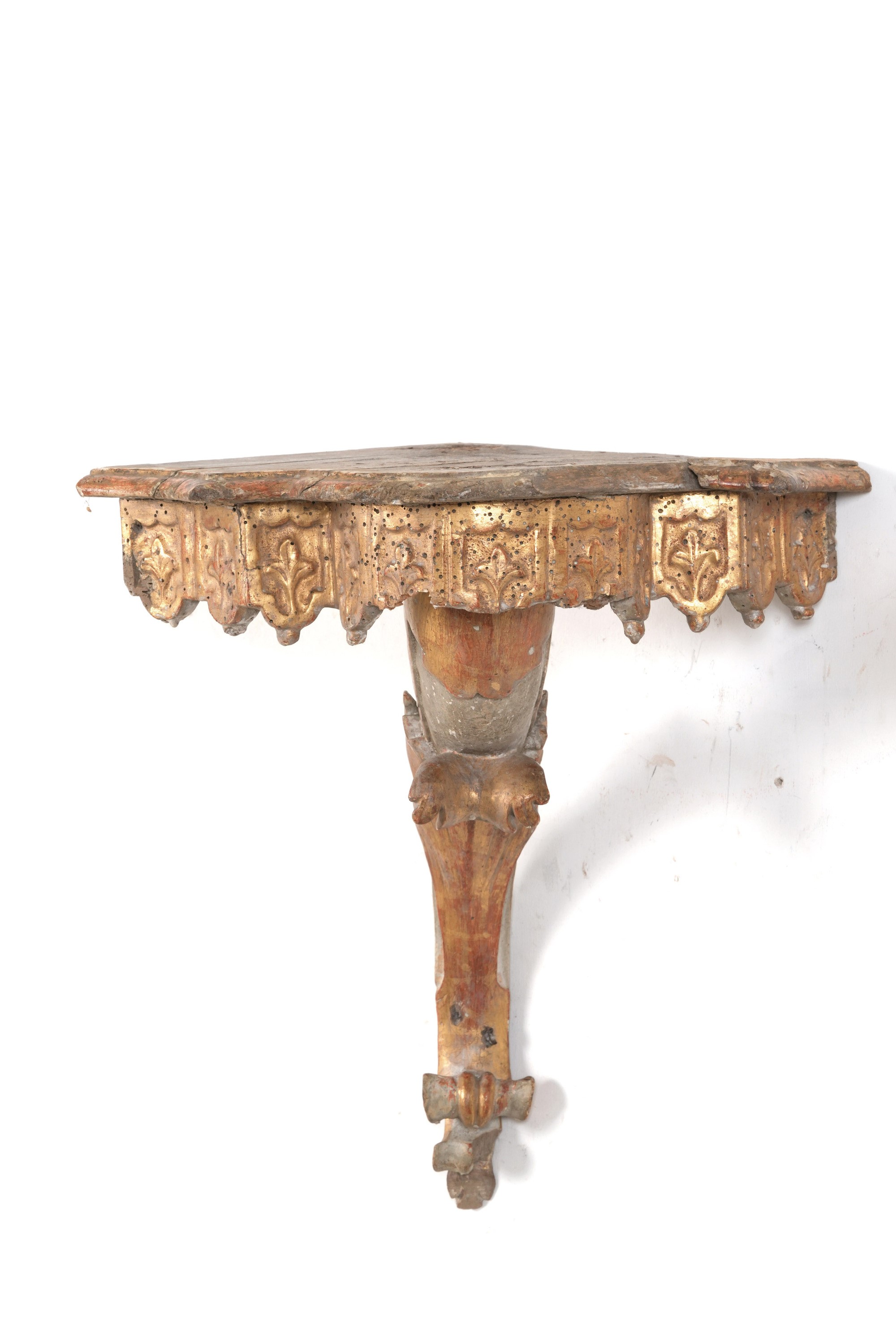 Sostegno mosso con decori fogliacei a rilievo, piano sagomato con grambiale mistilineo (difetti)
