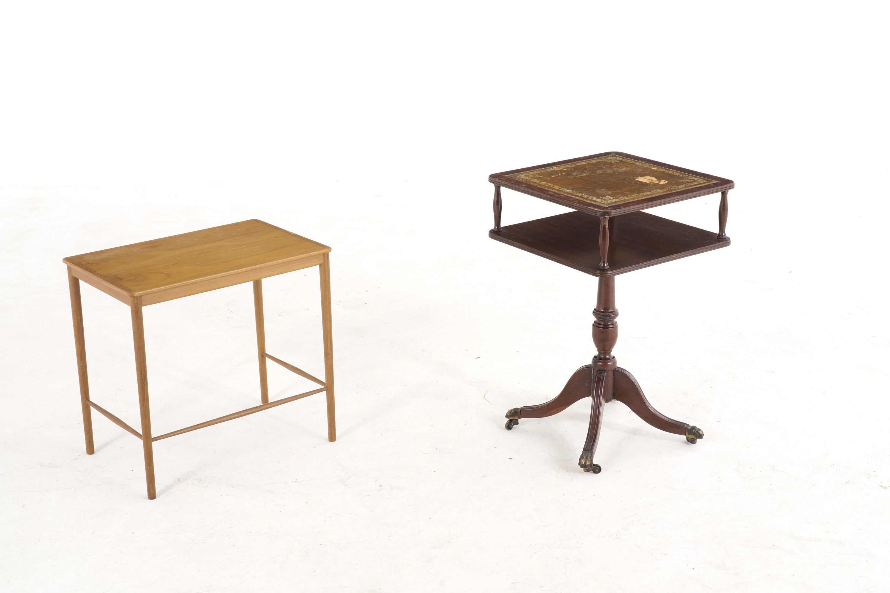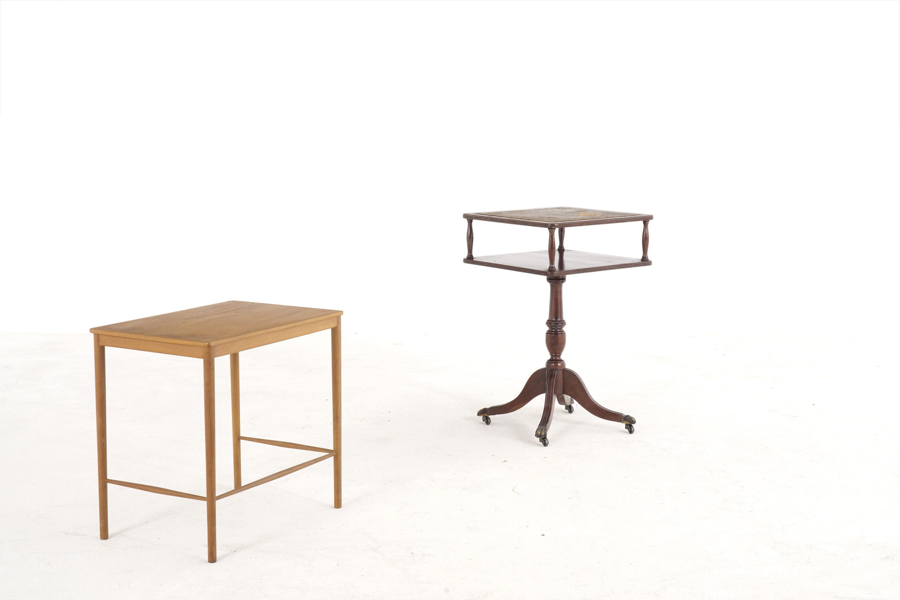 Due tavolini in legni diversi. Uno XIX-XX secolo, l'altro XX secolo